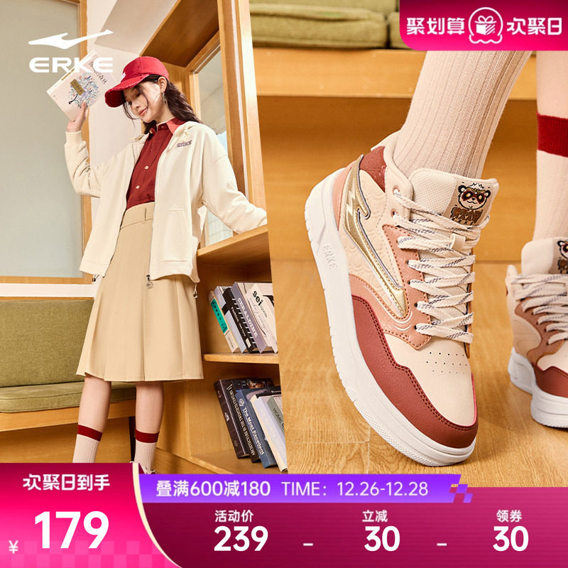 电池熊猫3鸿星尔克板鞋休闲鞋高帮女鞋冬季新款鞋子厚底运动鞋女