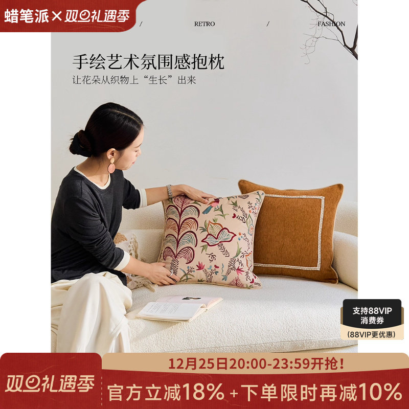 2025新款雪尼尔长方形沙发靠枕靠垫客厅腰枕大靠背抱枕套罩不含芯