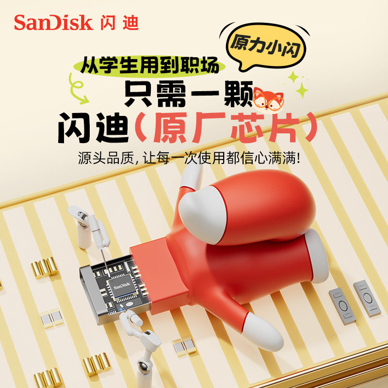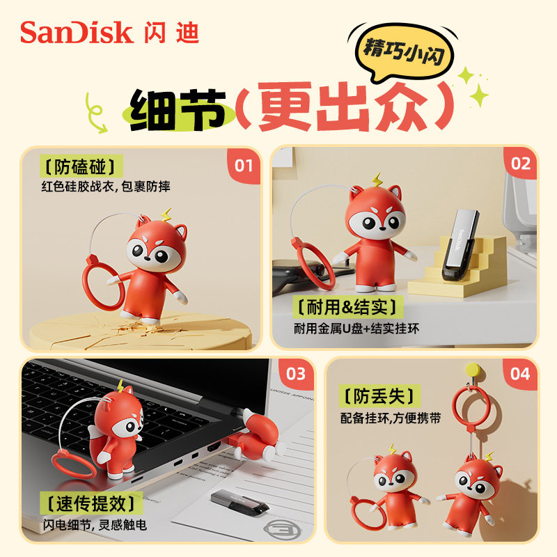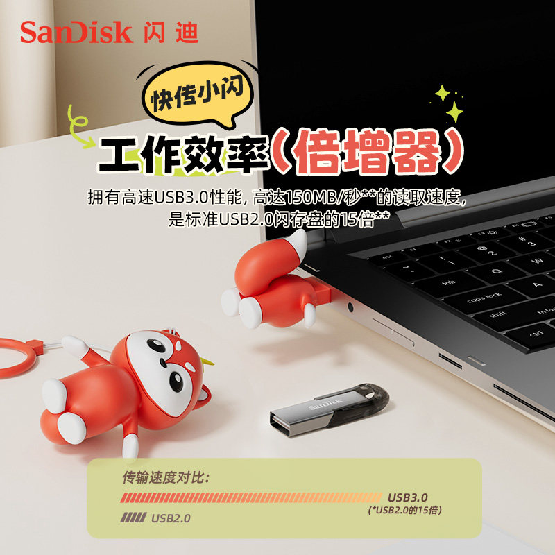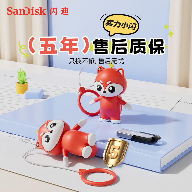 闪迪正品可爱松鼠u盘高速加密学生电脑手机大容量优盘女生送礼