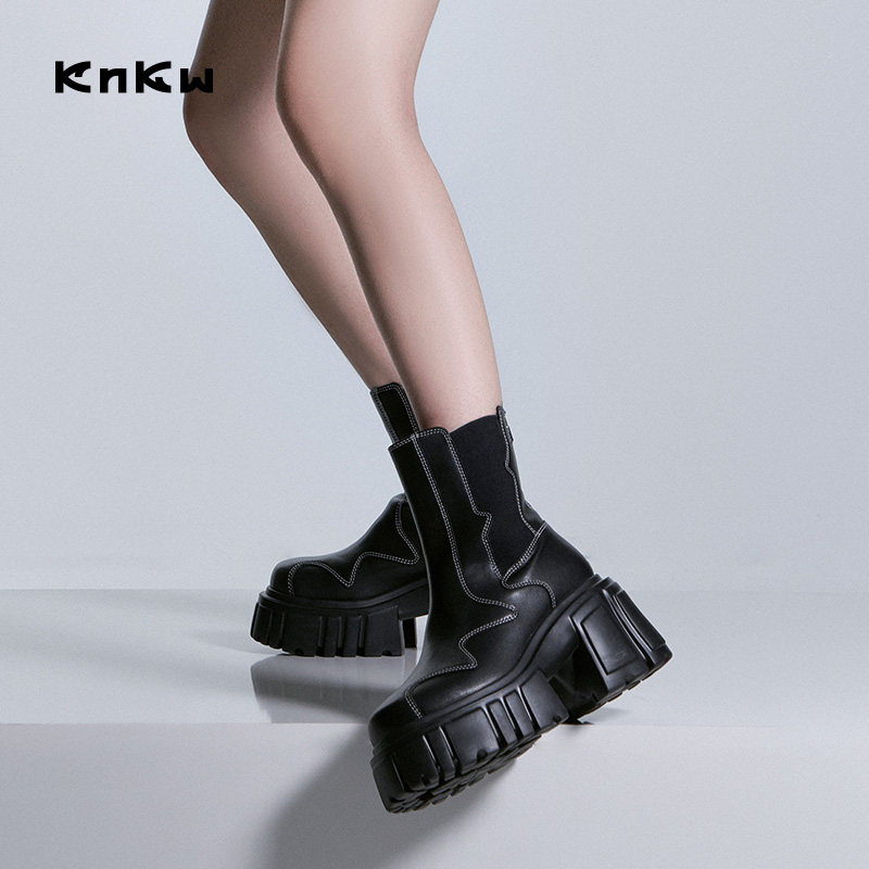 【费沁源同款】knkw旷野玫瑰厚底切尔西靴2025冬新款英伦风短靴女