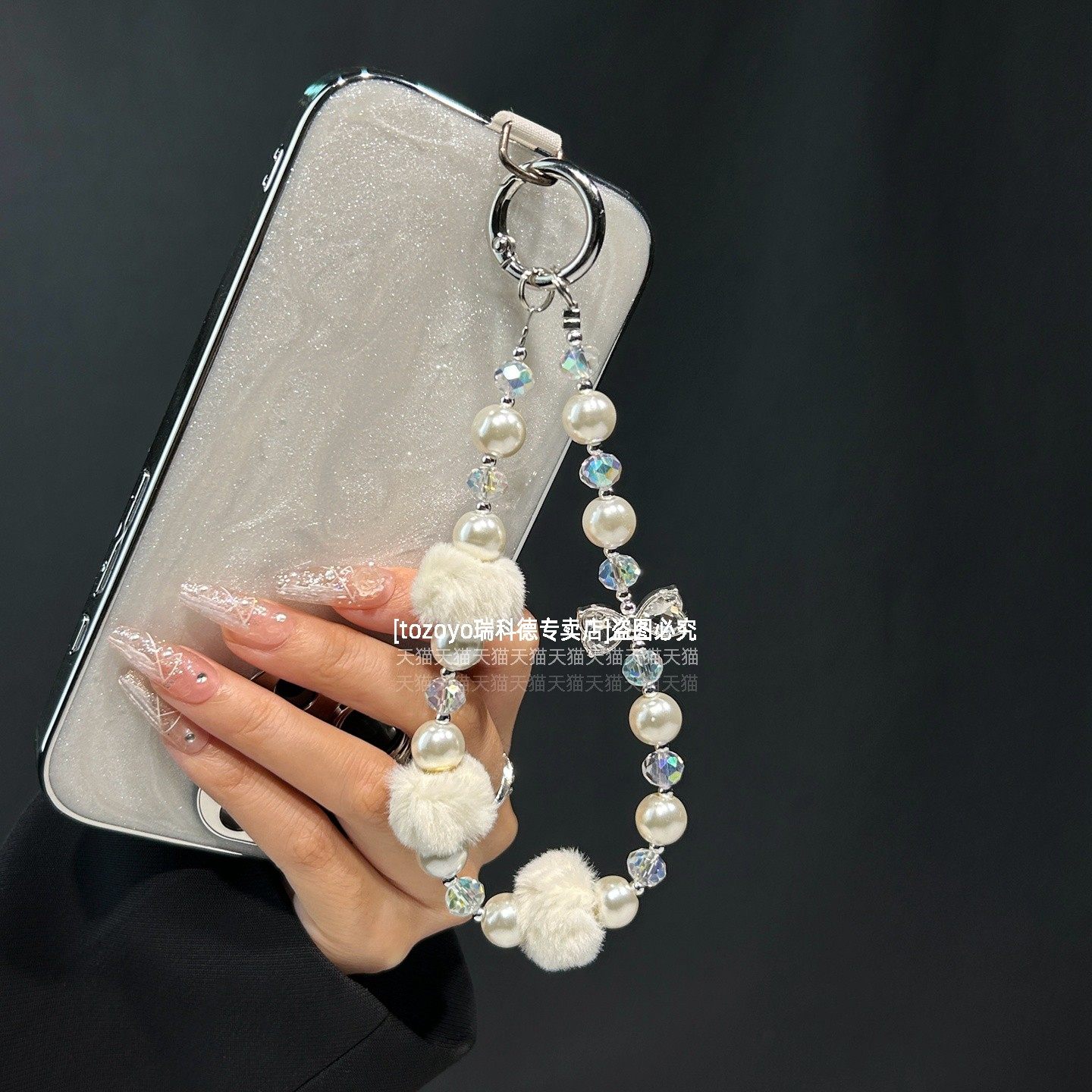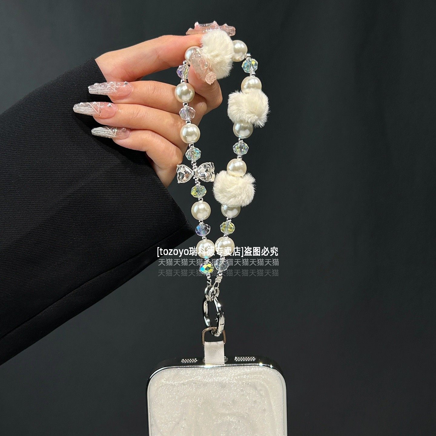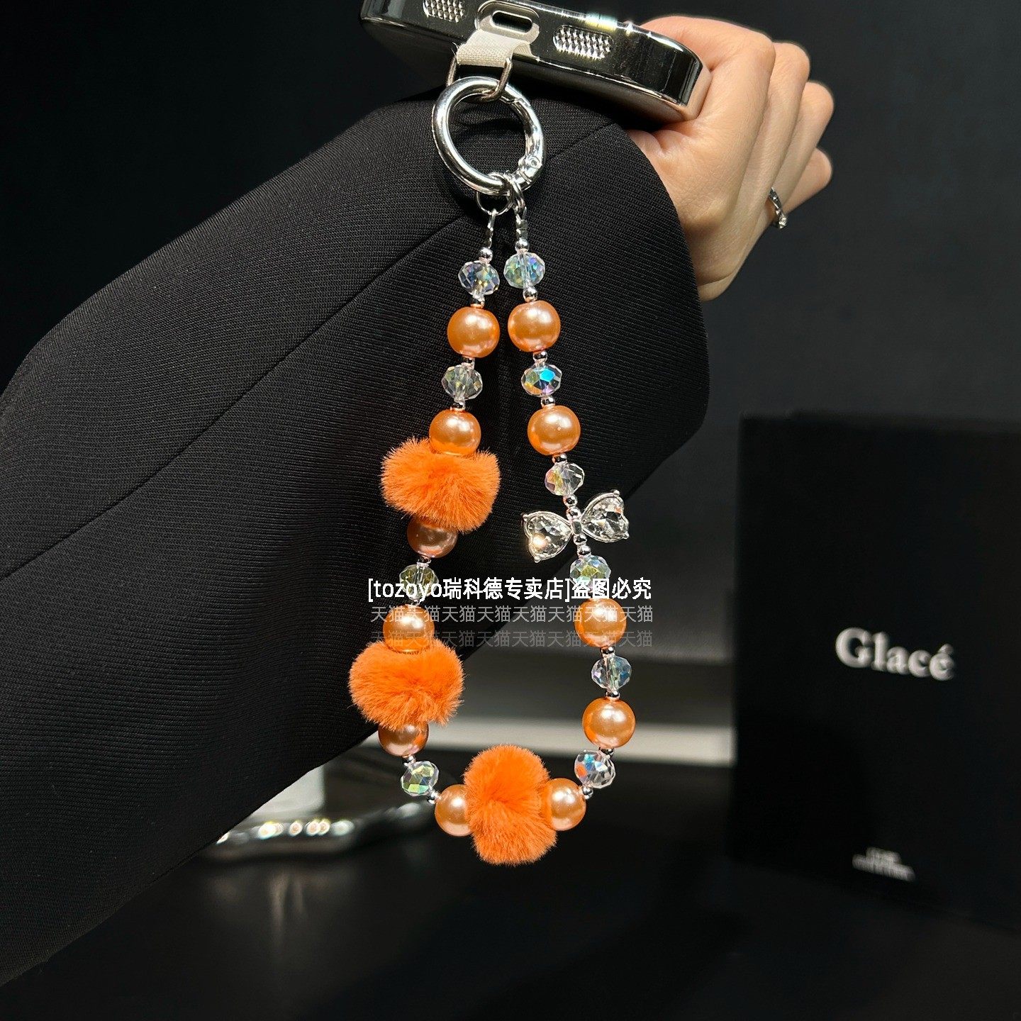 新款橙色手机链巨好看适用苹果17promax手腕链条带毛球秋冬精致挂饰高级水晶珍珠串珠挂链手链腕带包包钥匙壳