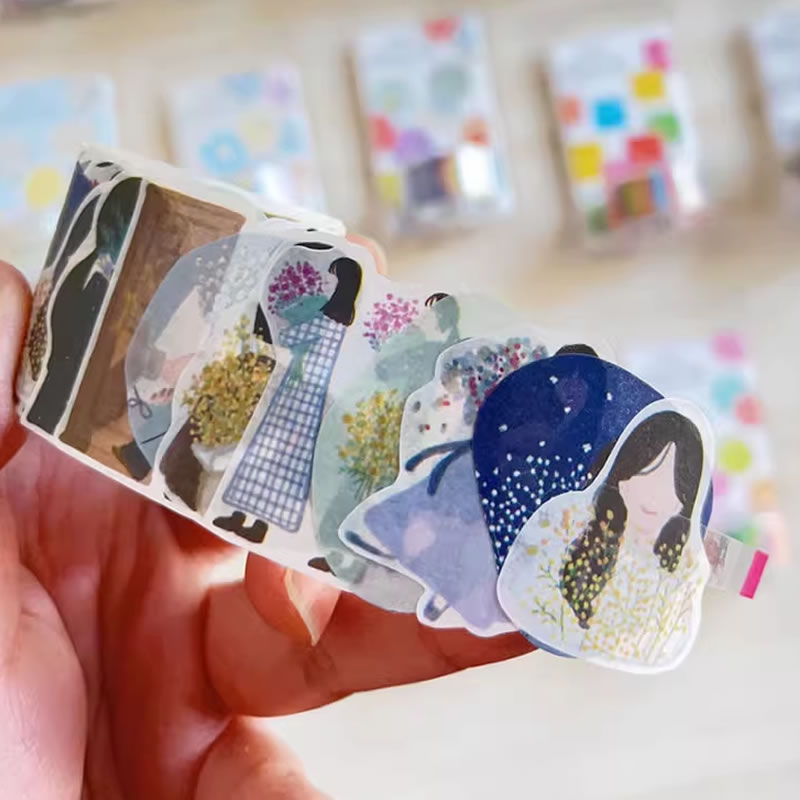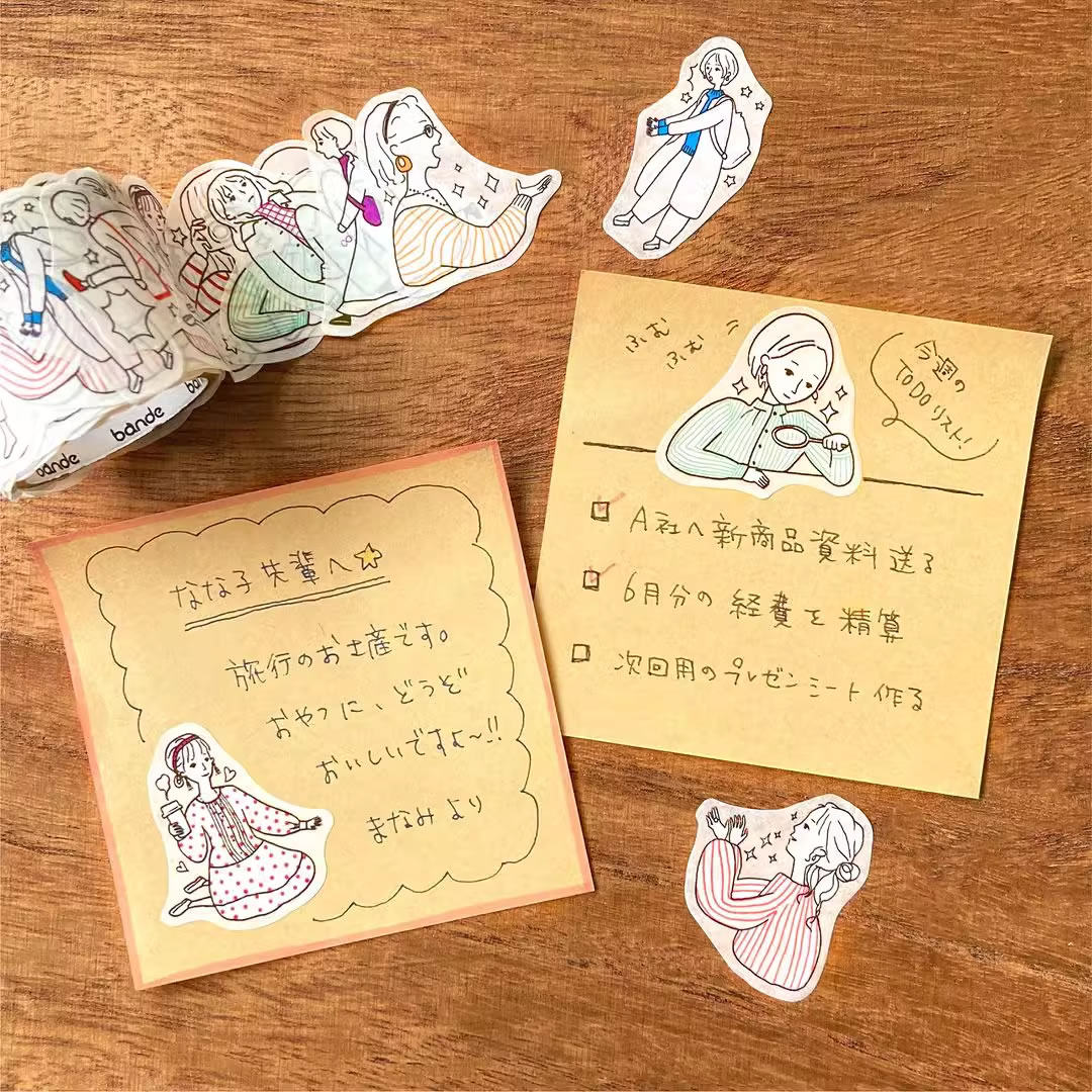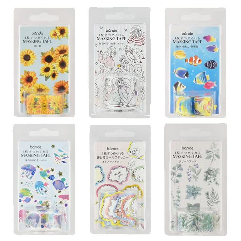 日本Bande夏季新品花束女孩异形胶带贴纸手帐周边海底水母向日葵