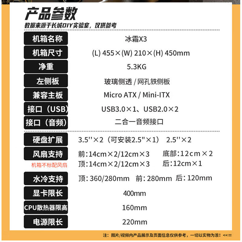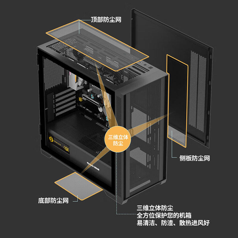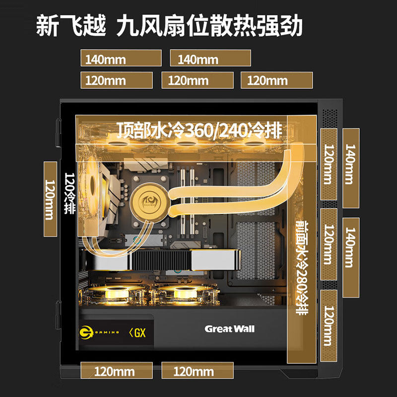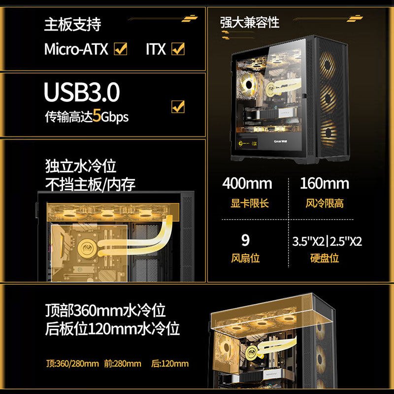 长城机箱冰霜X3玻璃侧透M-ATX黑白360水冷位网孔侧板台式机主机箱
