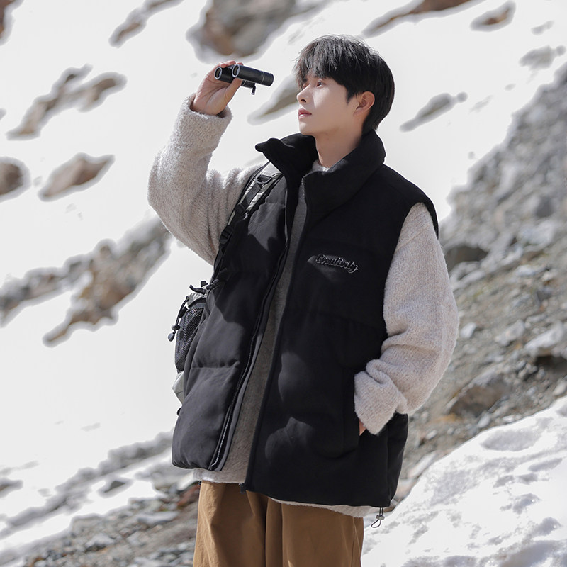 日系复古半袖潮牌羽绒棉马甲外穿男秋冬加厚棉衣宽松保暖坎肩外套