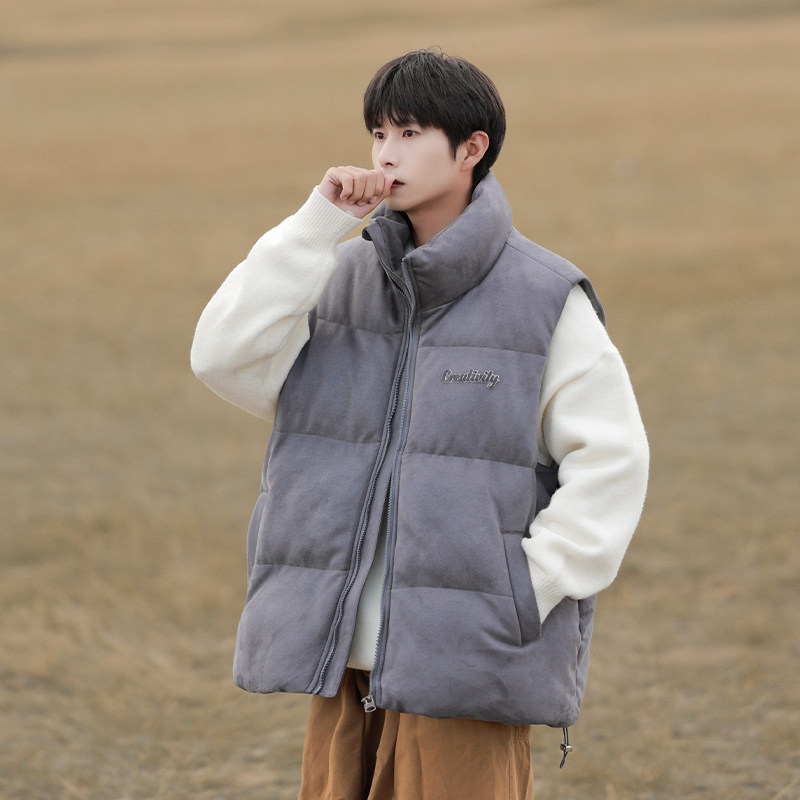 马甲男秋冬季青少年立领潮流灯芯绒马夹加厚保暖男士帅气背心外套