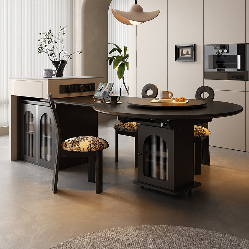 意式极简可伸缩岛台餐桌一体可变圆桌现代家用客餐厅高端高级导台