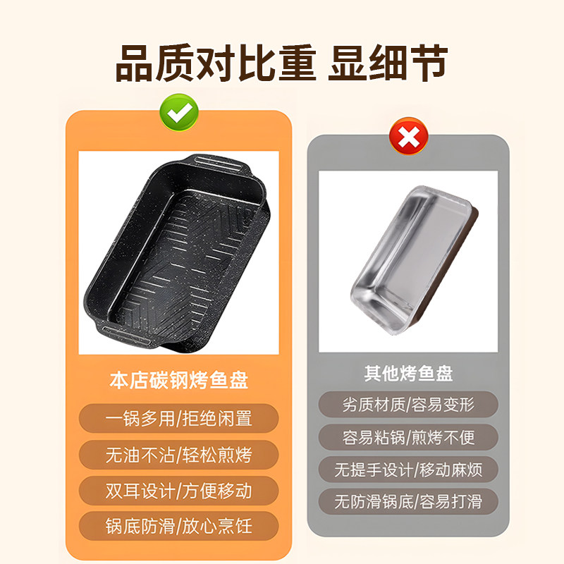 不锈钢烤鱼盘电磁炉可明火加厚烧烤炉专用烤肉燃气灶不粘带盖托盘