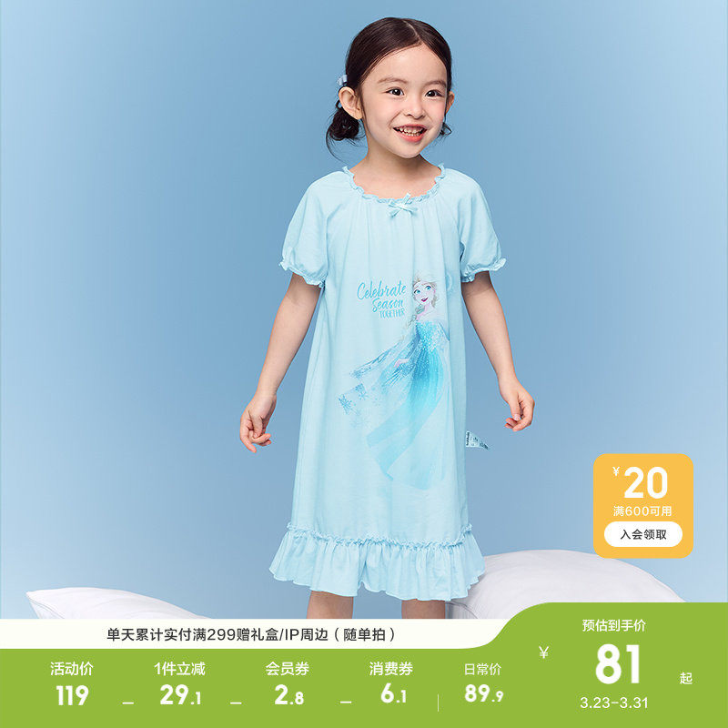 【迪士尼IP】巴拉巴拉女童睡裙儿童家居服夏季空调服裙子小童甜美