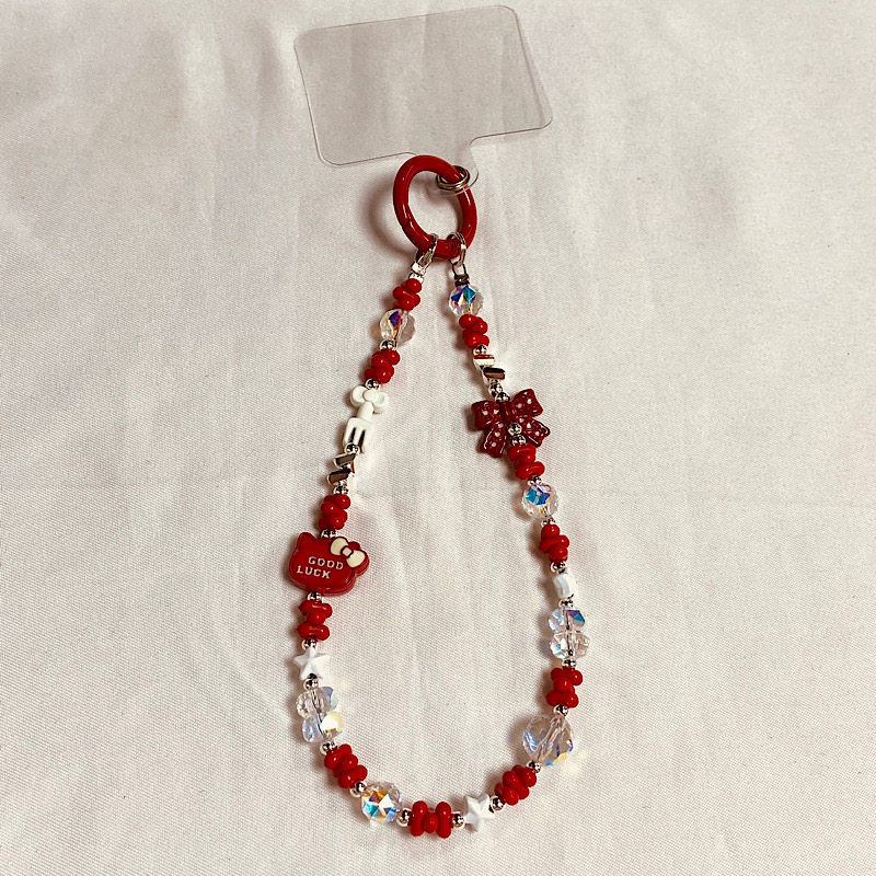 卡通KT猫合金链亚克力黑粉甜酷彩色花生珠包包挂饰钥匙扣挂件