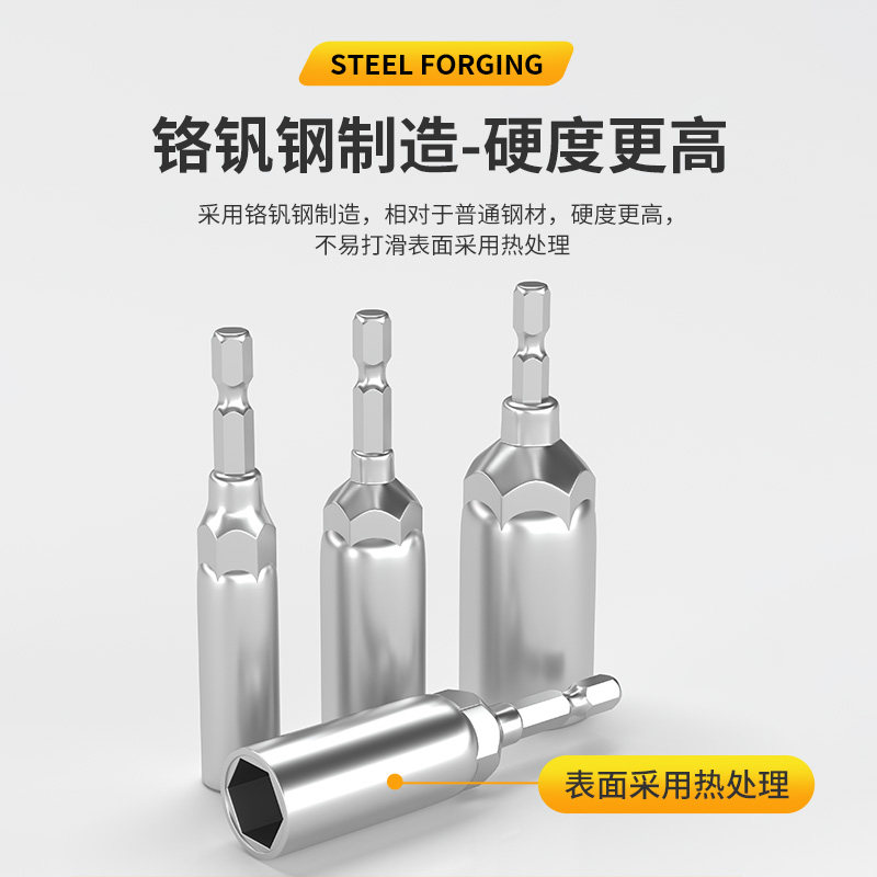 强磁钻尾丝套筒燕尾钉彩钢瓦8mm内六角批头手电钻套头全套高硬度
