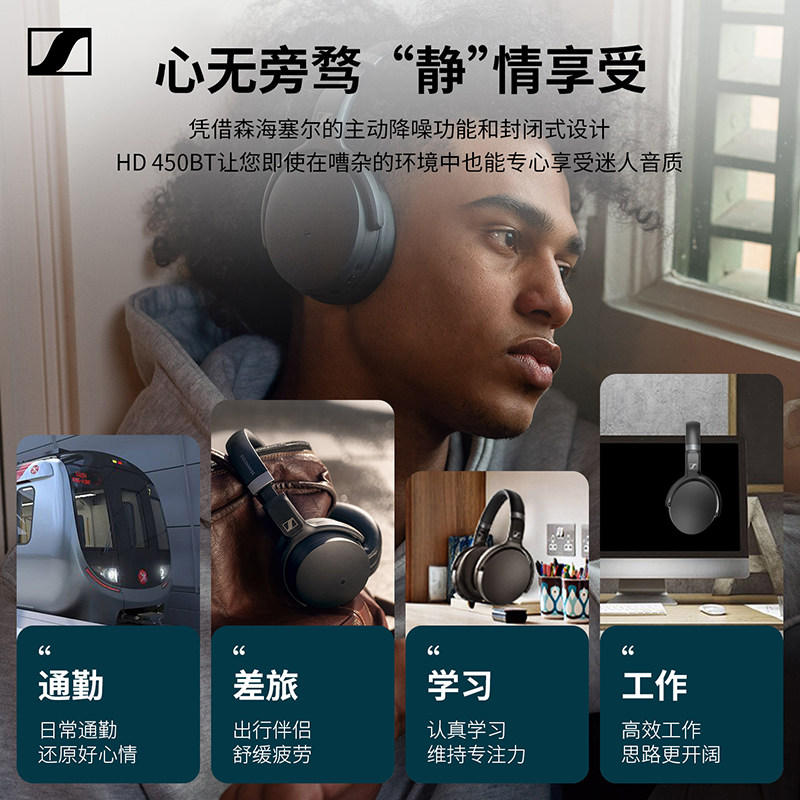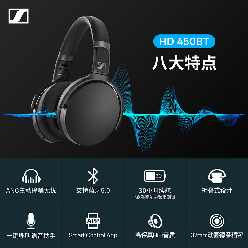 森海塞尔头戴蓝牙耳机HD450BT可折叠无线有线两用游戏耳麦降噪