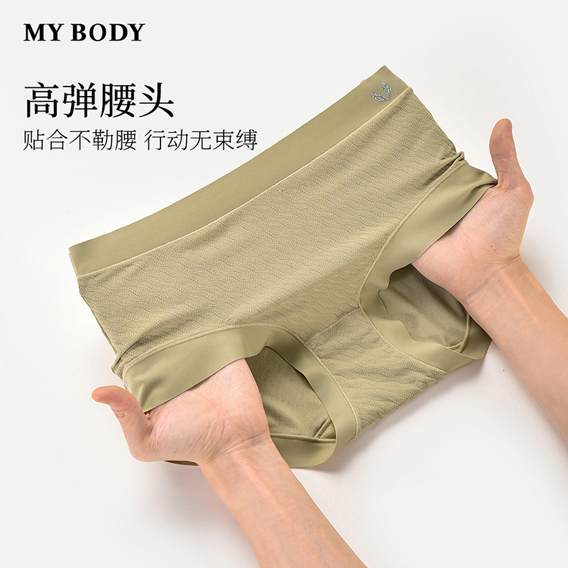 3件129|商场同款MYBODY内裤女纯棉底档无痕高腰收腹包臀平角裤