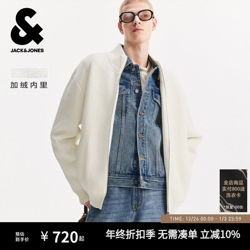 杰克琼斯2025年秋季新款男装毛针织衫宽松半高领长袖外套舒适上衣