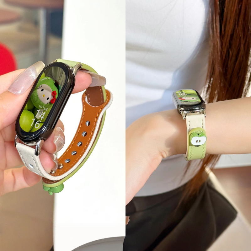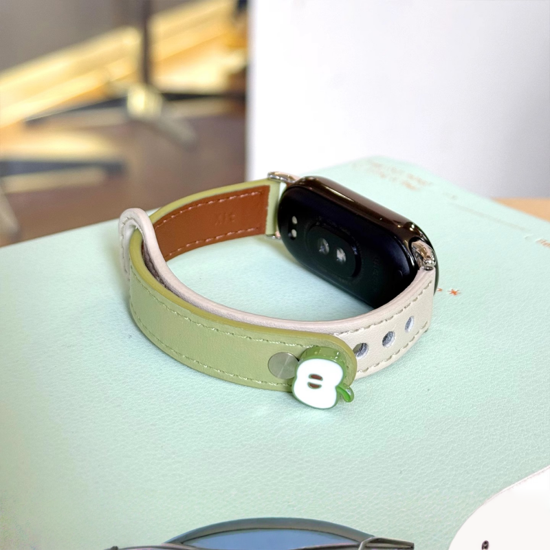 适用小米手环10表带新品小米9手表超纤真皮质8nfc拼色立体红苹果腕带保护套壳夏季男女款智能电子运动透气