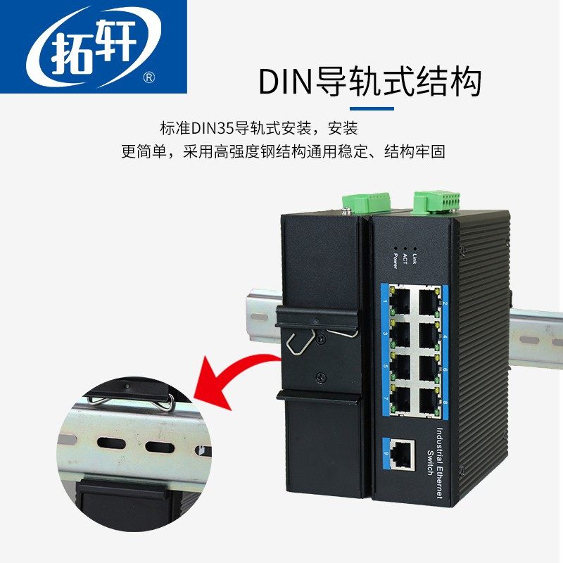 拓轩工业级百兆千兆5口8口9口16口24口POE供电交换机导轨式以太网集线器监控网络端口扩展器交换器TX8-5E