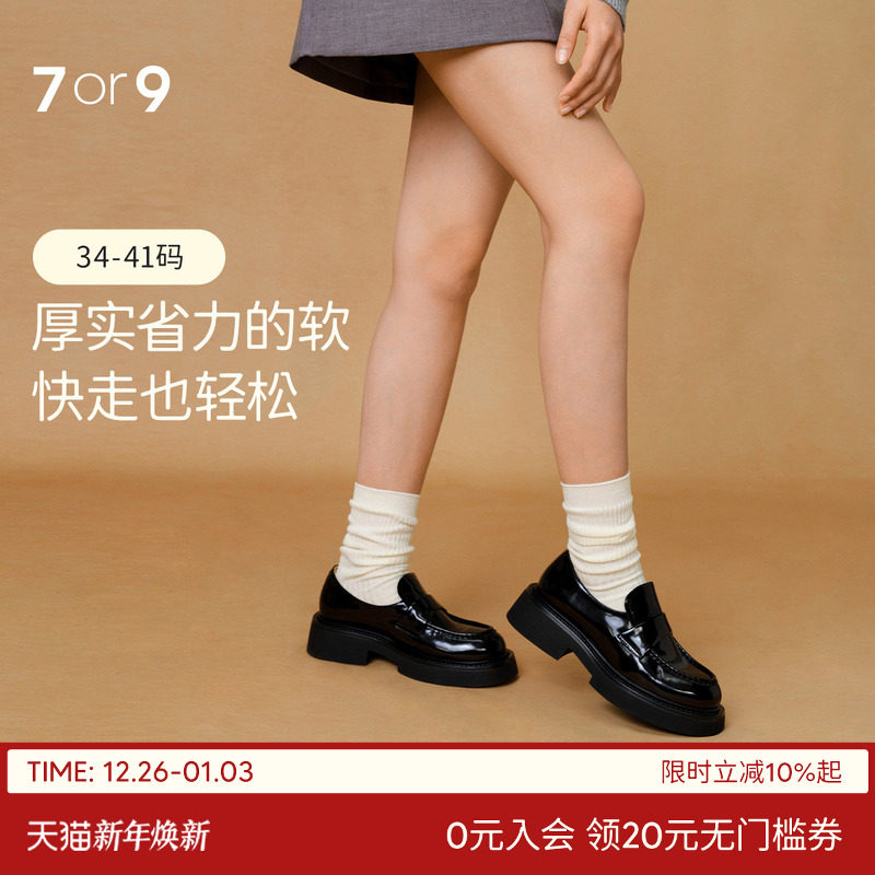 7or9厚底乐福鞋女鞋秋冬款大码一脚蹬增高英伦风小皮鞋黑色生巧挞
