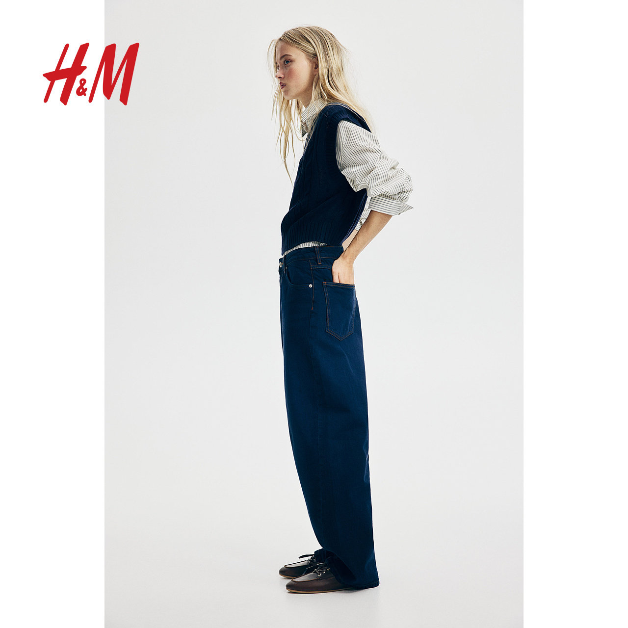 HM女装冬季棉质灯笼裤腿筒形中腰牛仔裤1239899