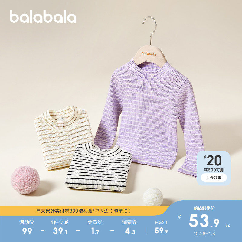 巴拉巴拉童装女童毛衫儿童2025新款秋冬装宝宝毛衣百搭打底针织衫