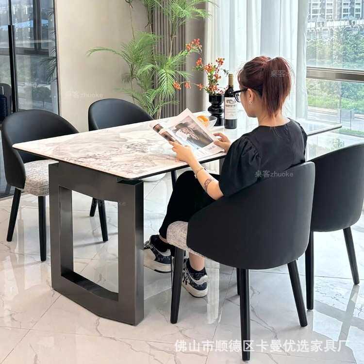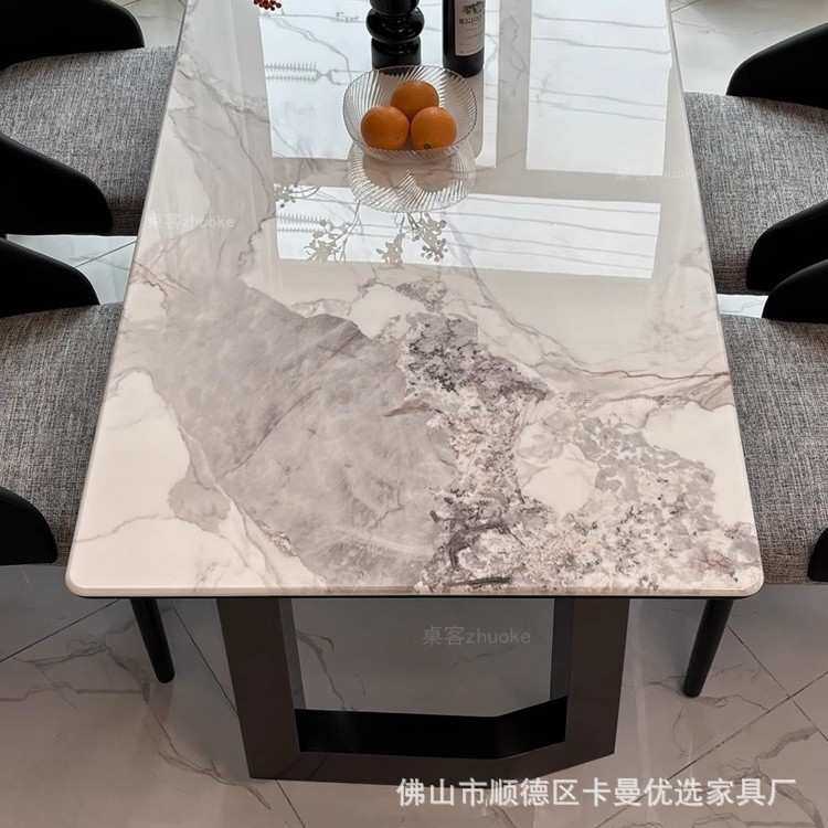 轻奢微晶石餐桌椅高端组合现代简约奢石天然大理石超晶石网红餐桌