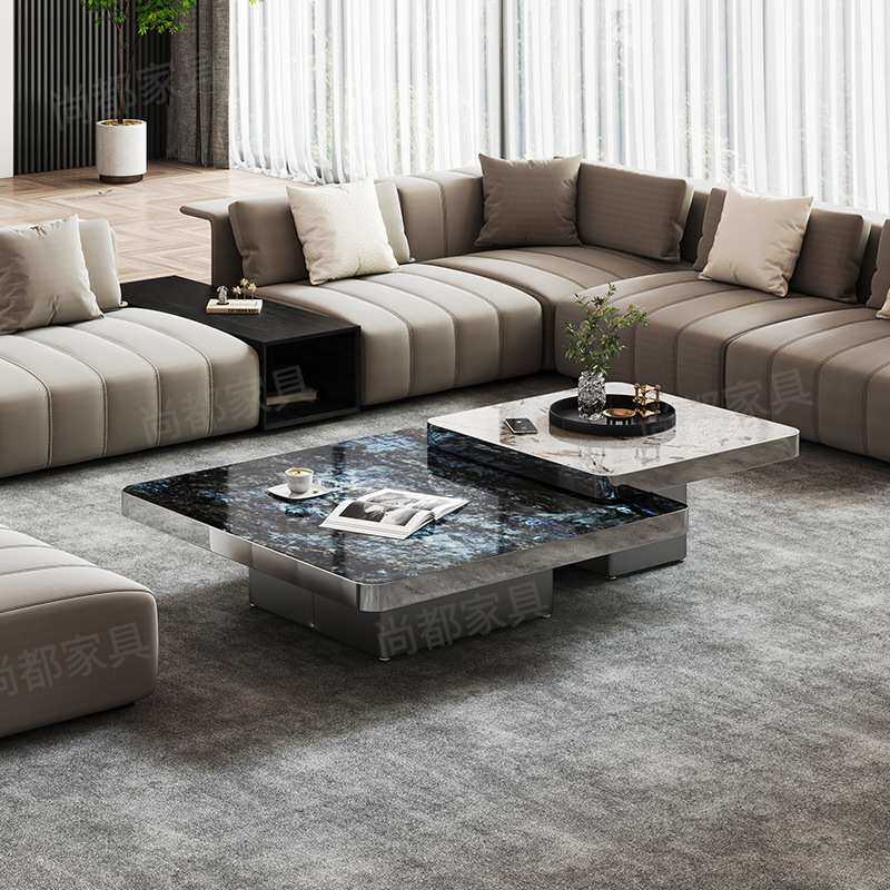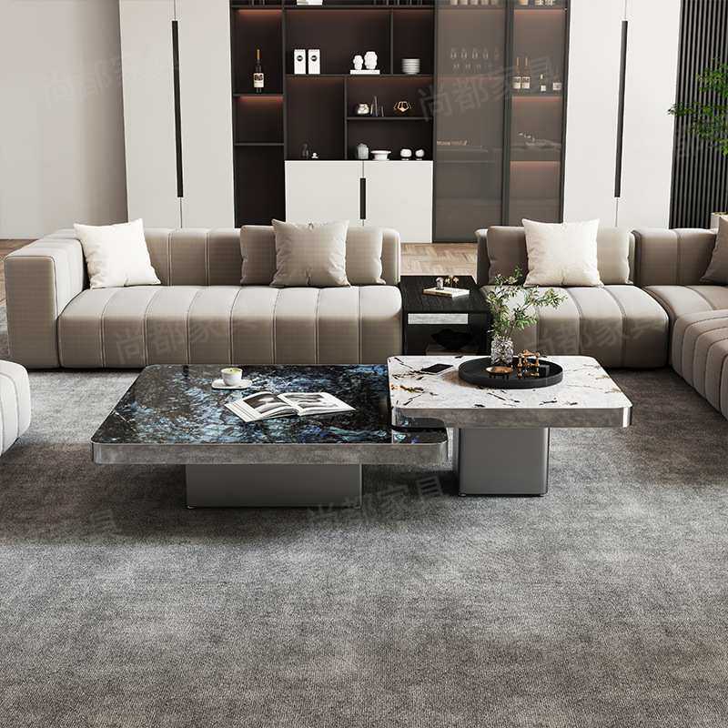 新款微晶石大理石茶几组合轻奢极简简约岩板家用客厅茶几高级感