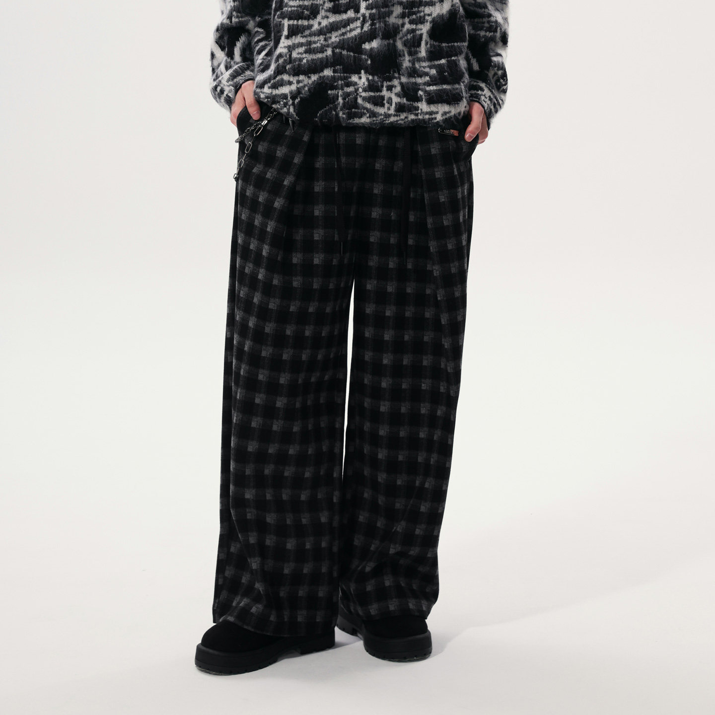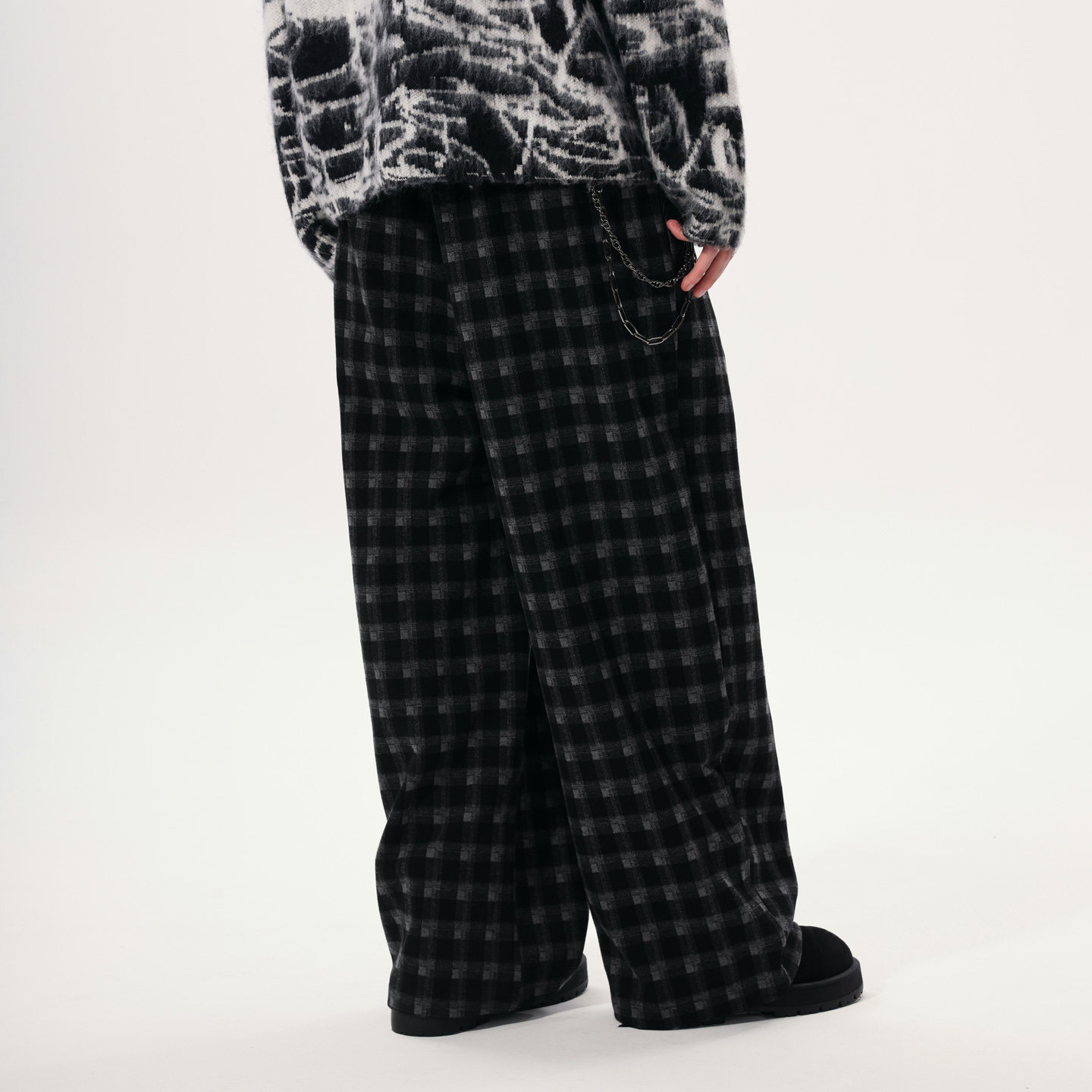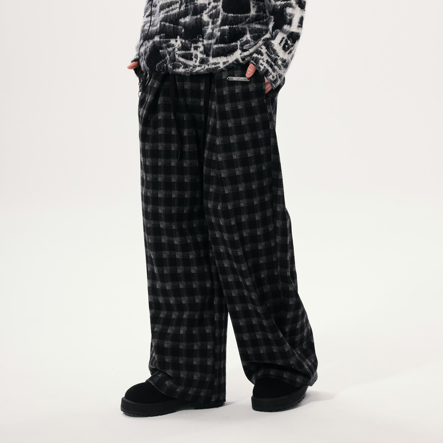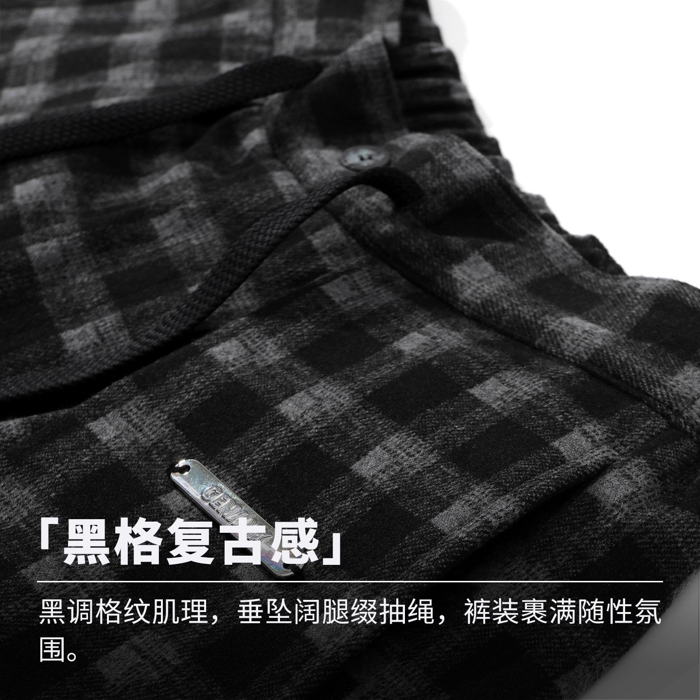 GENANX闪电潮牌2025冬季新款宽松长裤独特潮流格纹印花情侣休闲裤