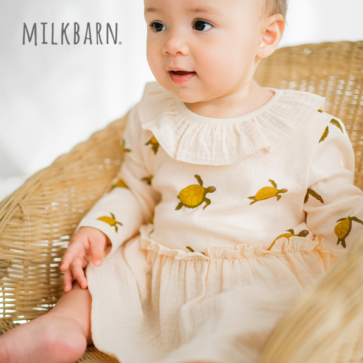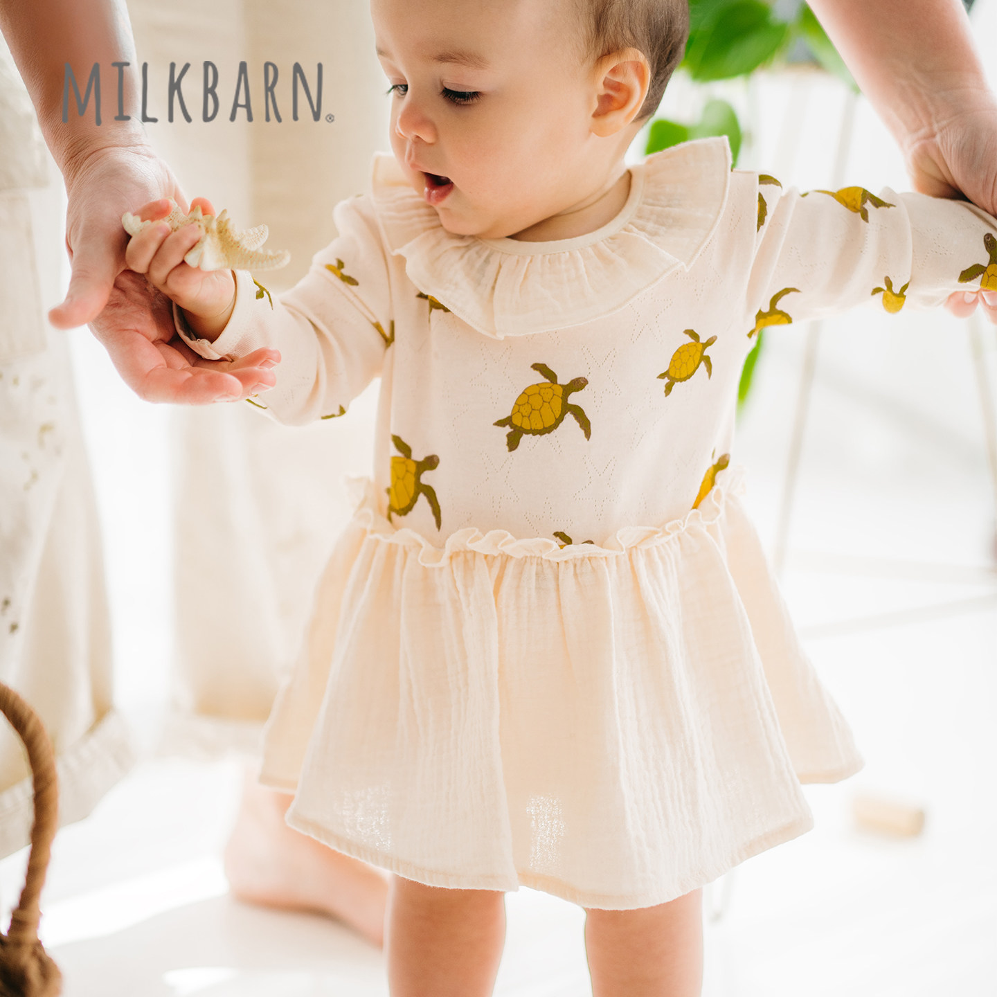 Milkbarn2026春夏新品婴儿荷叶边裙摆包屁衣女宝宝可爱三角款哈衣