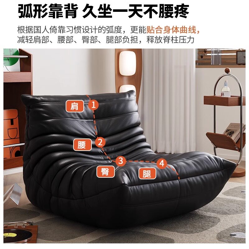 毛毛虫真皮沙发togo懒人沙发可躺可睡现代轻奢客厅沙发椅单人躺椅