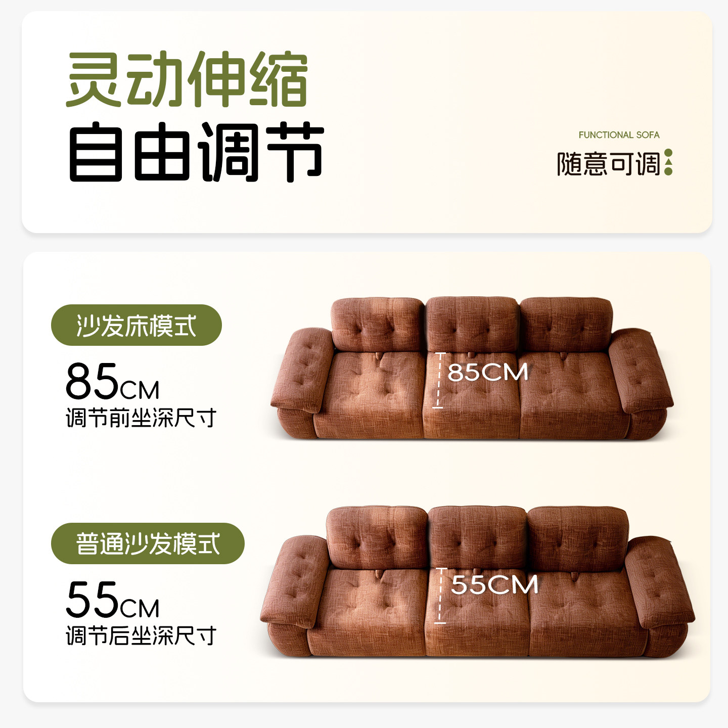 三梦中古风布艺沙发小户型折叠两用压缩复古单双人模块布丁沙发床