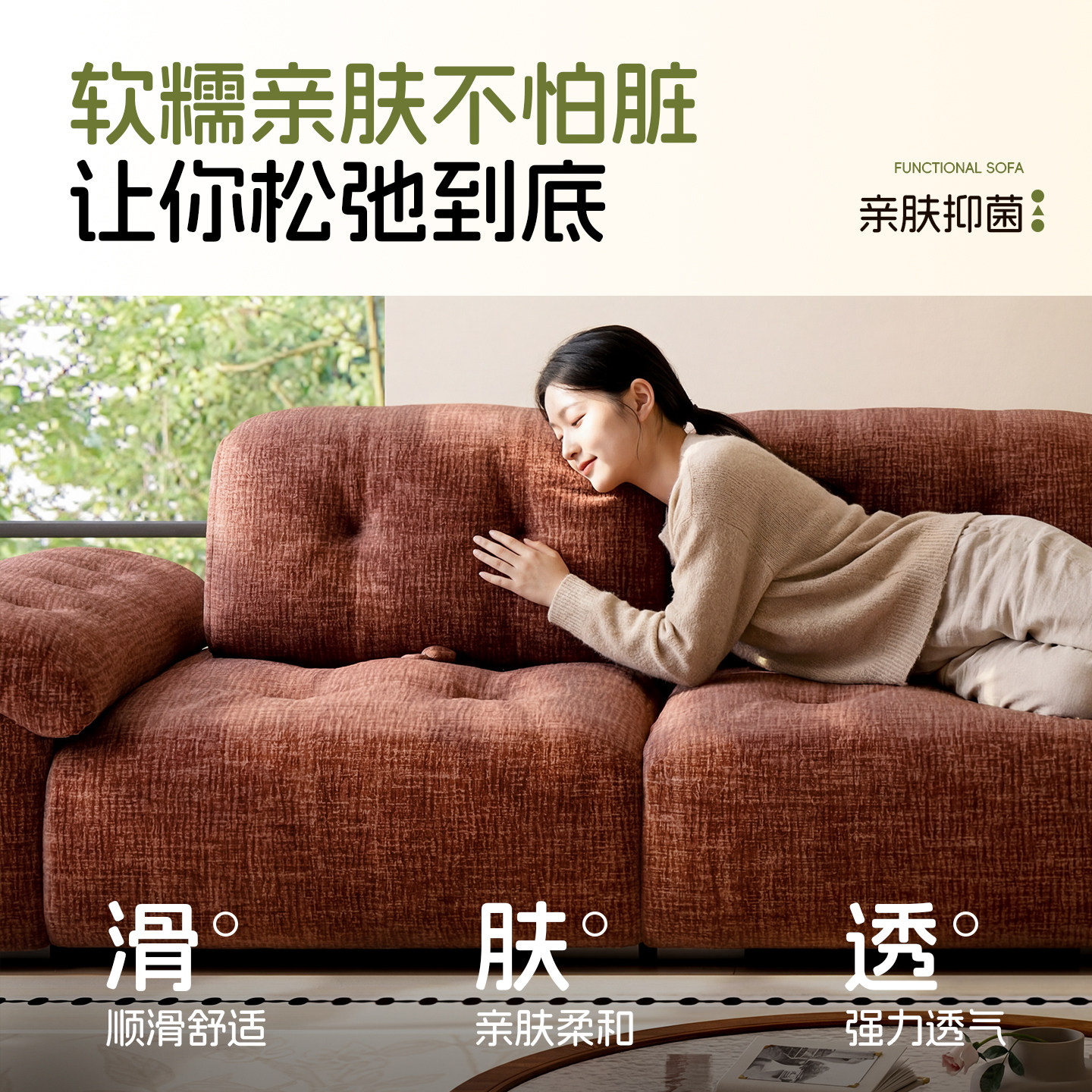 奶油风布艺沙发客厅2025新款小户型家用可拆洗三人位直排云朵沙发