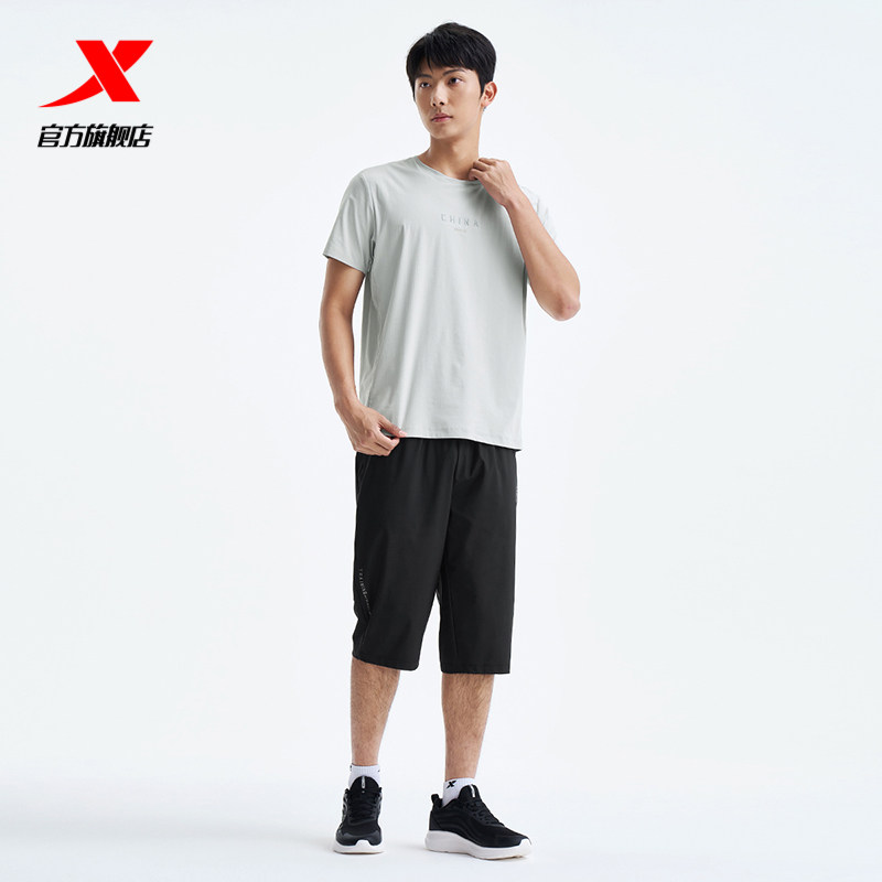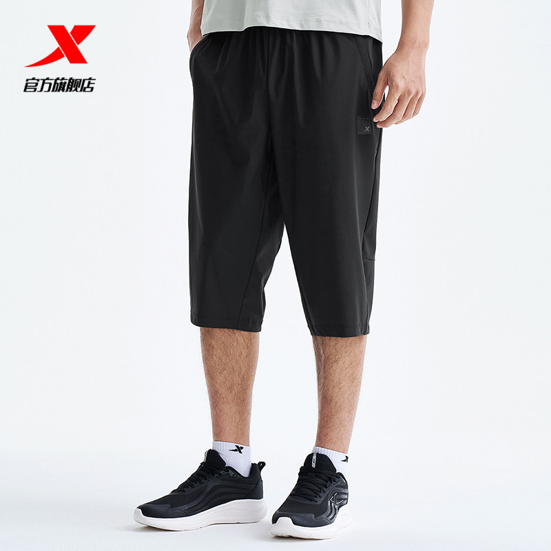 特步七分裤男2025秋季新款时尚潮流针织男子运动长裤975329620077