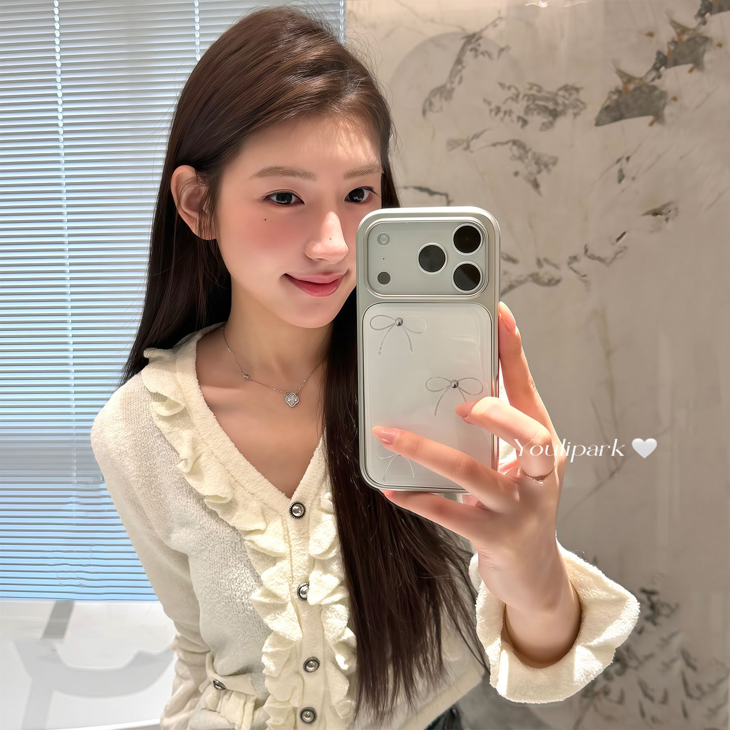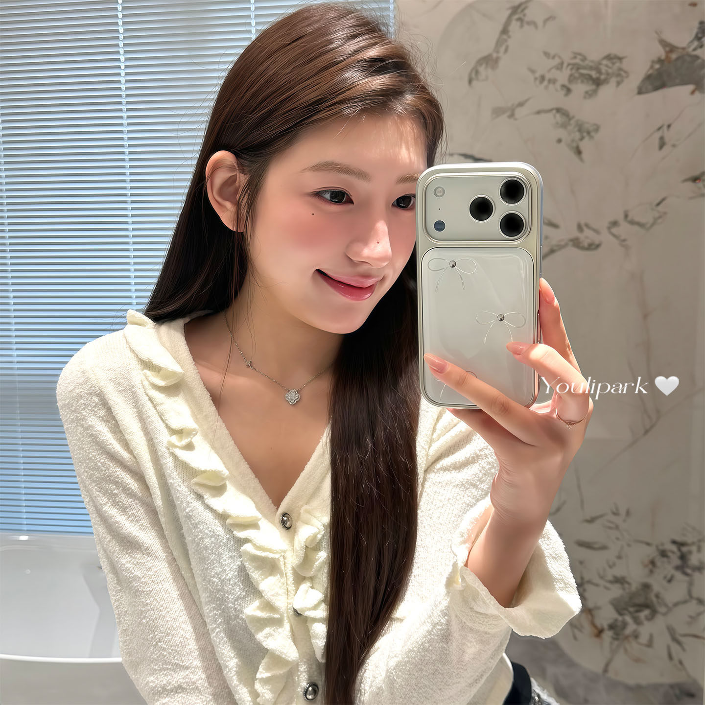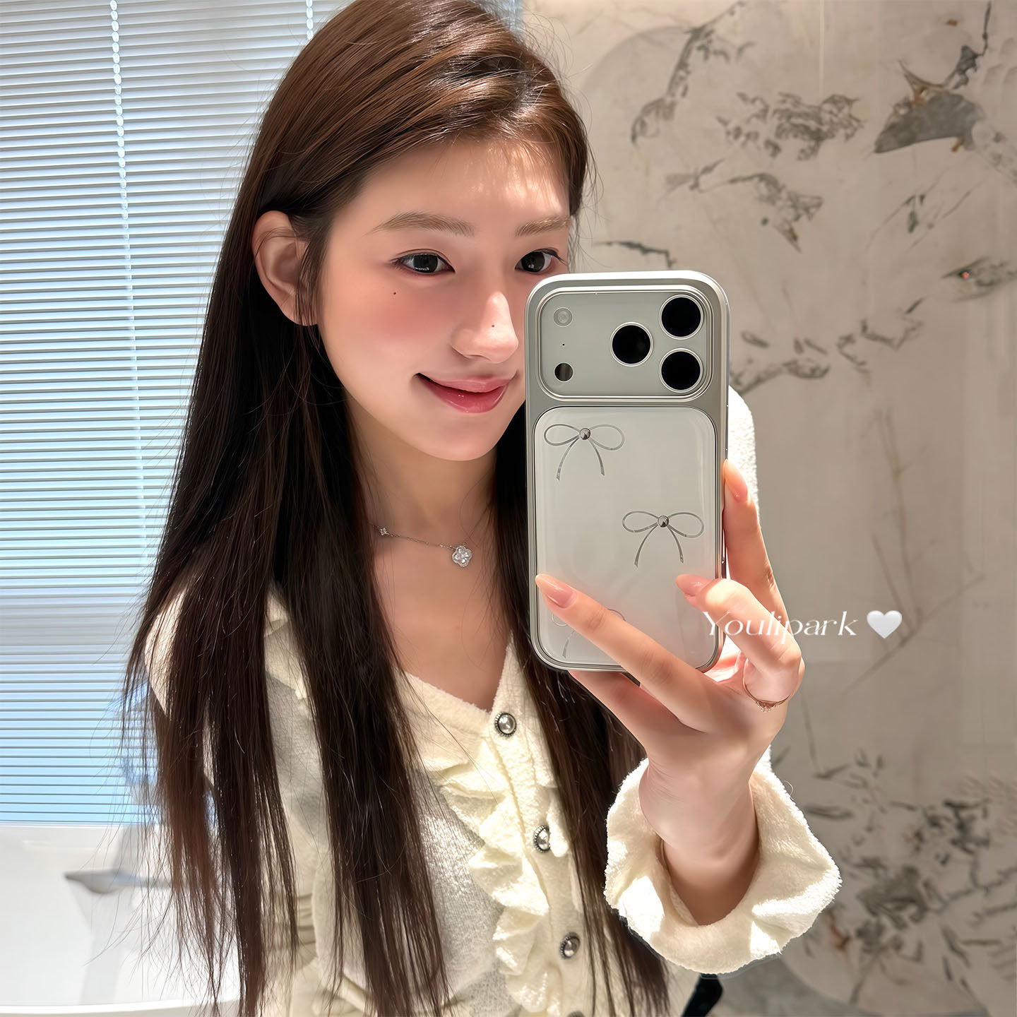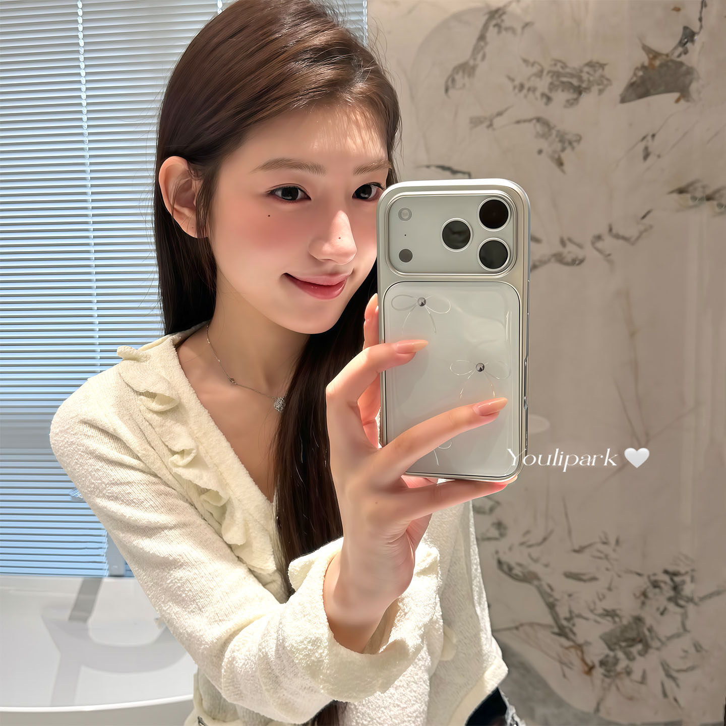 由里公园ins韩系少女温柔珍珠白线条蝴蝶结17适用17pro苹果17ProMax手机壳iPhone16全包14新款16Promax保护套