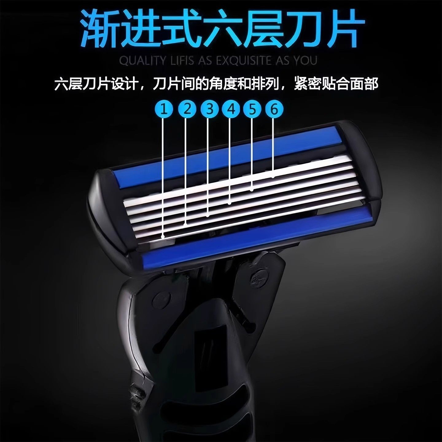 进口6层刀片剃须刀利亚刮胡刀手动刀片六层刀头男刮毛刮头胡子刀