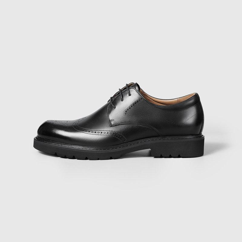 【小牛皮】青润chioryn袋鼠鞋男黑色真皮增高厚底休闲通勤风皮鞋