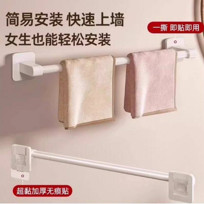 毛巾架卫生间免打孔挂杆浴巾置物架一体厕所洗澡洗手间浴室收纳架