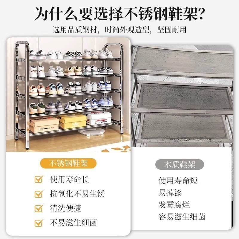 不锈钢鞋架多层家用门口室内宿舍收纳架简易鞋柜加厚桌下置物架子