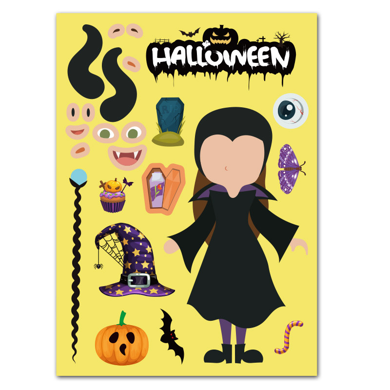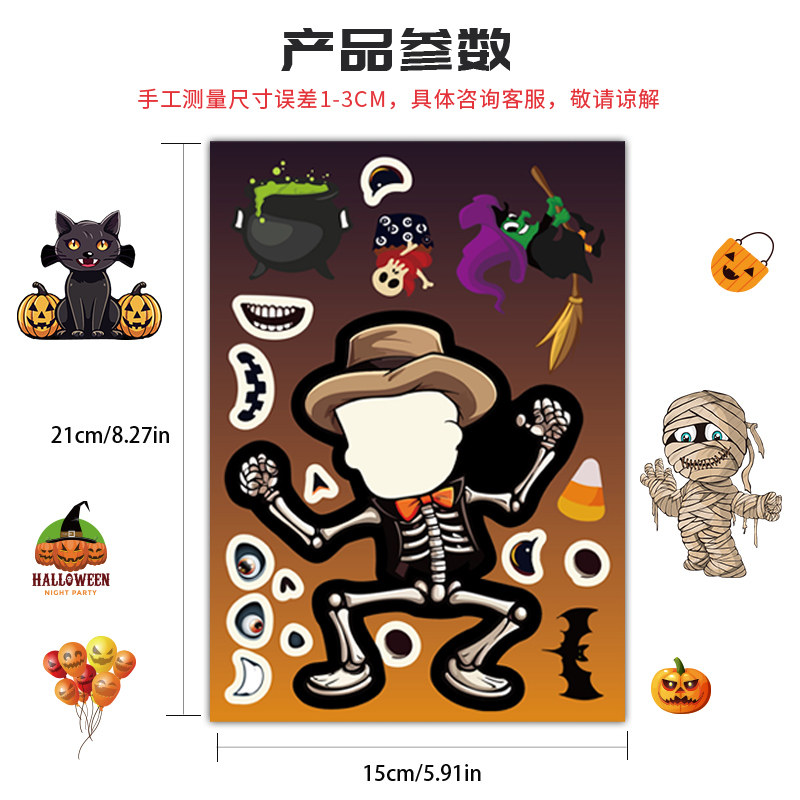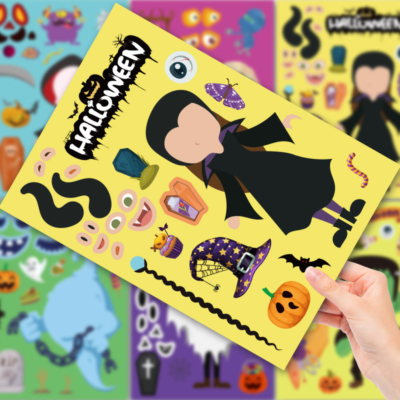 热门万圣节卡通儿童贴纸DIY换脸趣味欢乐组合粘画贴幼儿娱乐动手操作贴纸小怪物