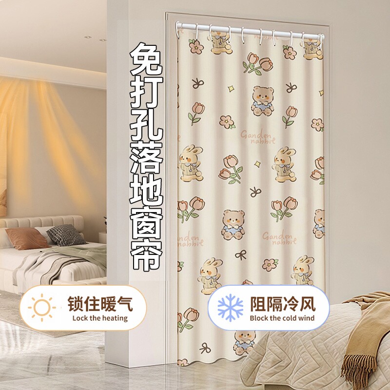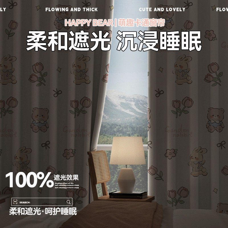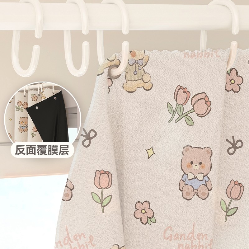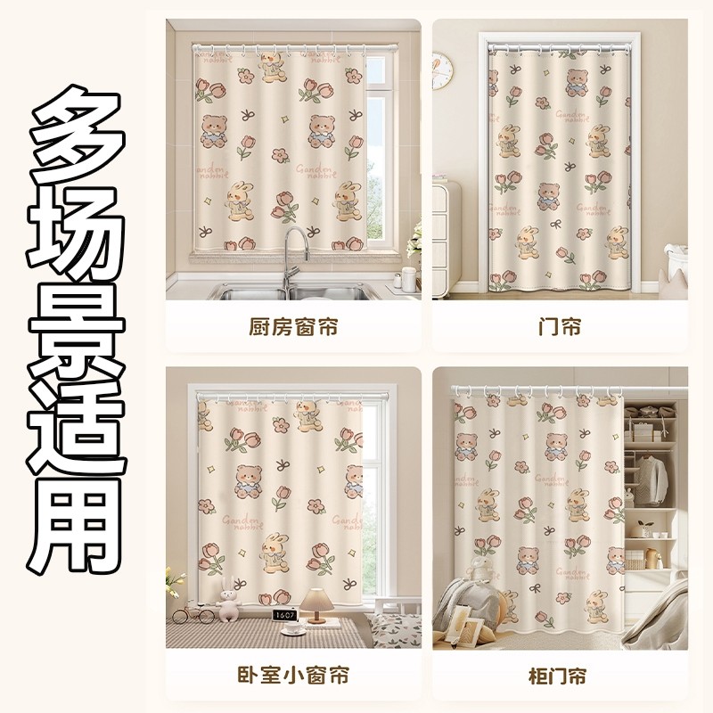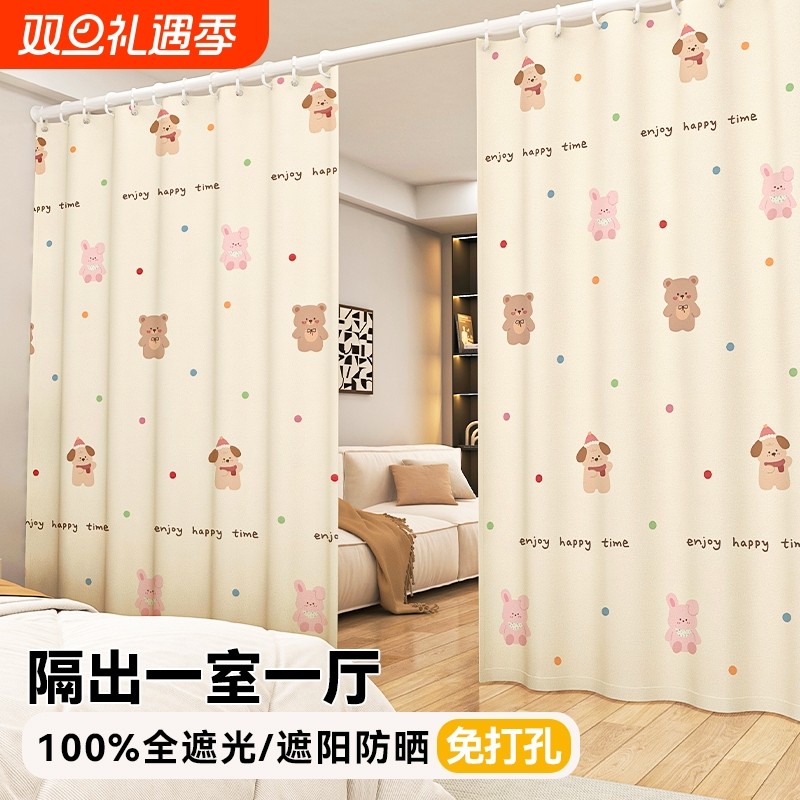 卡通免打孔安装窗帘卧室隔断帘绍兴柯桥遮阳帘遮光布窗帘杆一整套