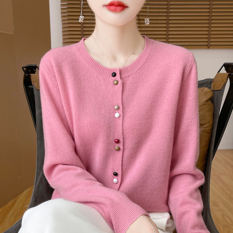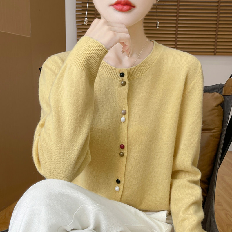 春秋薄款羊毛针织开衫女韩版圆领宽松短款羊绒衫外搭毛衣外套上衣