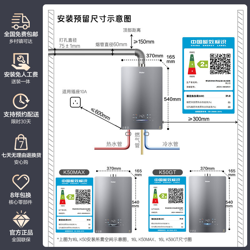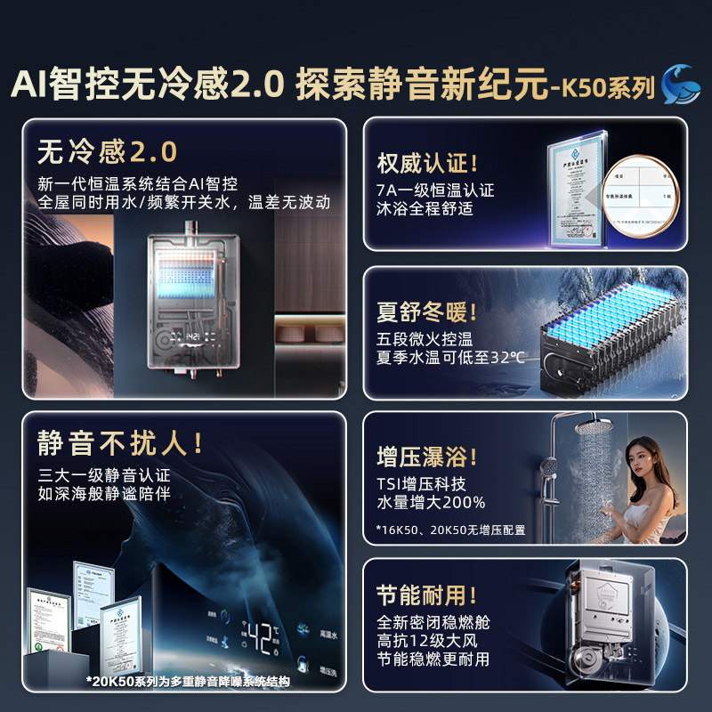 [新品小海鲸]海尔燃气热水器无冷感2.0K50MAX家用天然气恒温静音