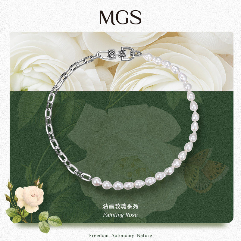 MGS曼古银油画玫瑰巴洛克珍珠项链女精致大气925银高级感锁骨颈链