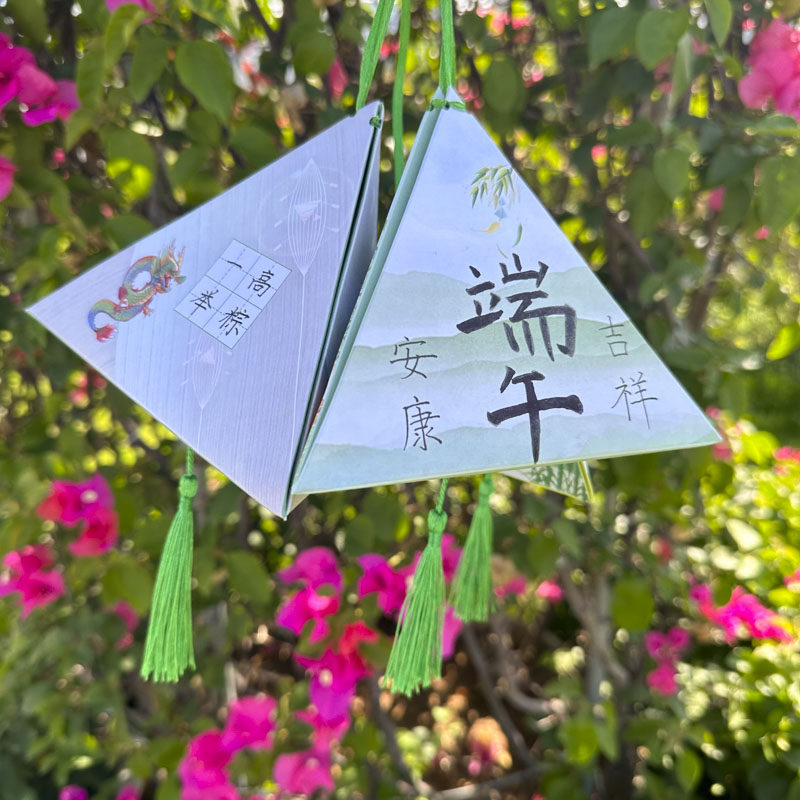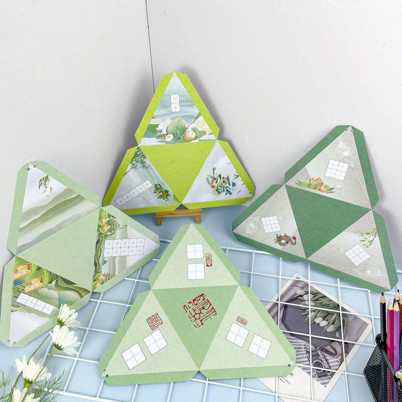 创意国风端午节硬笔书法作品纸书写练字粽叶古诗卡纸小学生幼儿园儿童书签DIY自制手工立体粽子折纸挂件贺卡