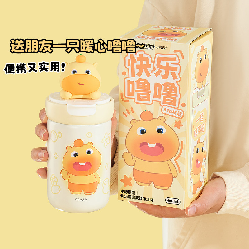 言仓水豚噜噜联名双饮保温杯可爱水杯保冷情侣闺蜜女新年生日礼物