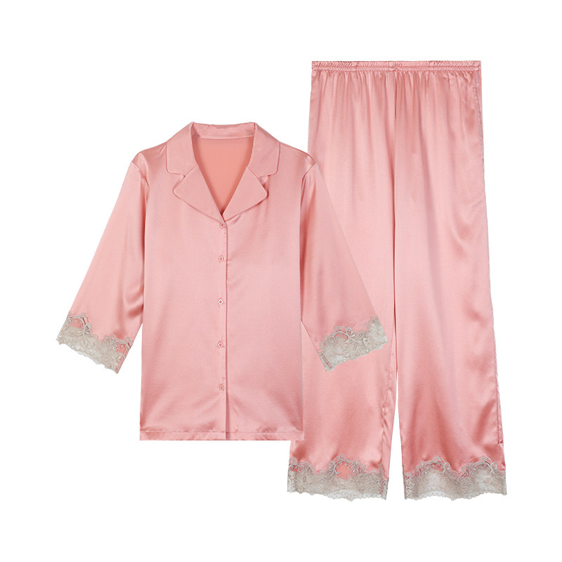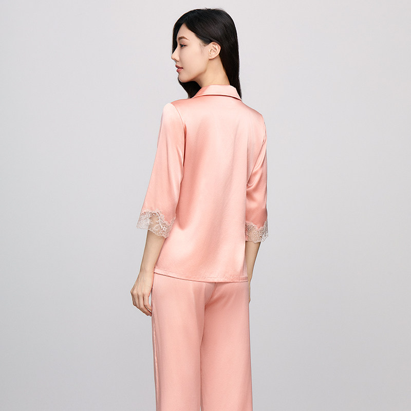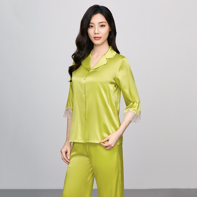 安莉芳专柜新品桑蚕丝翻领开衫睡衣女士可外穿家居服套装EL00709