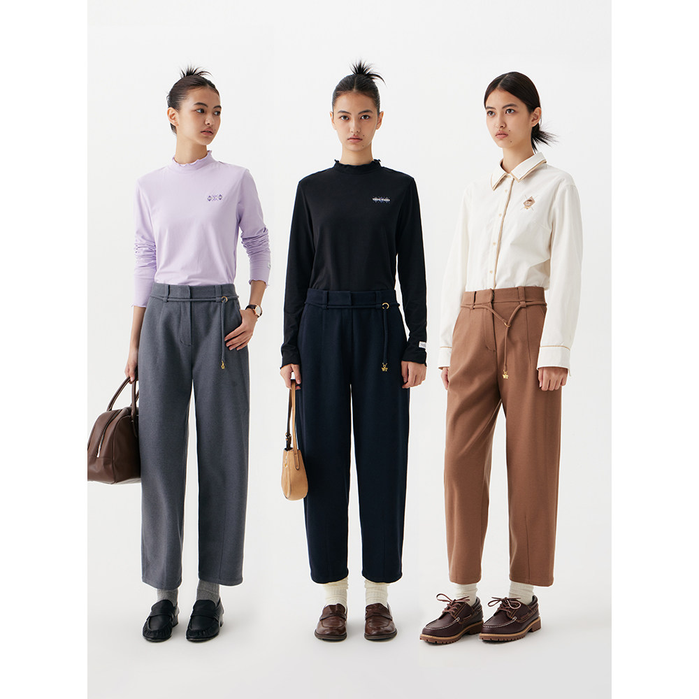 TeenieWeenie小熊女装休闲裤2025冬季新款时尚宽松多色高腰束脚裤