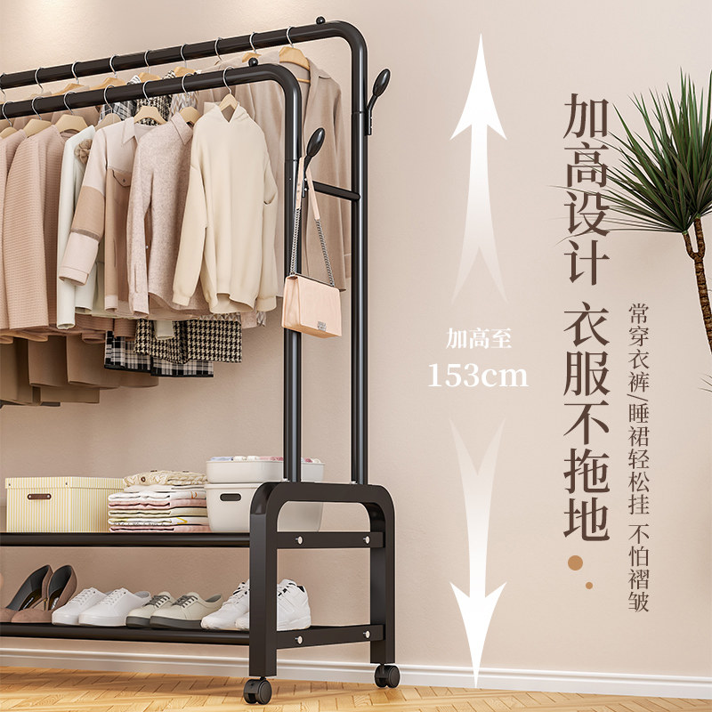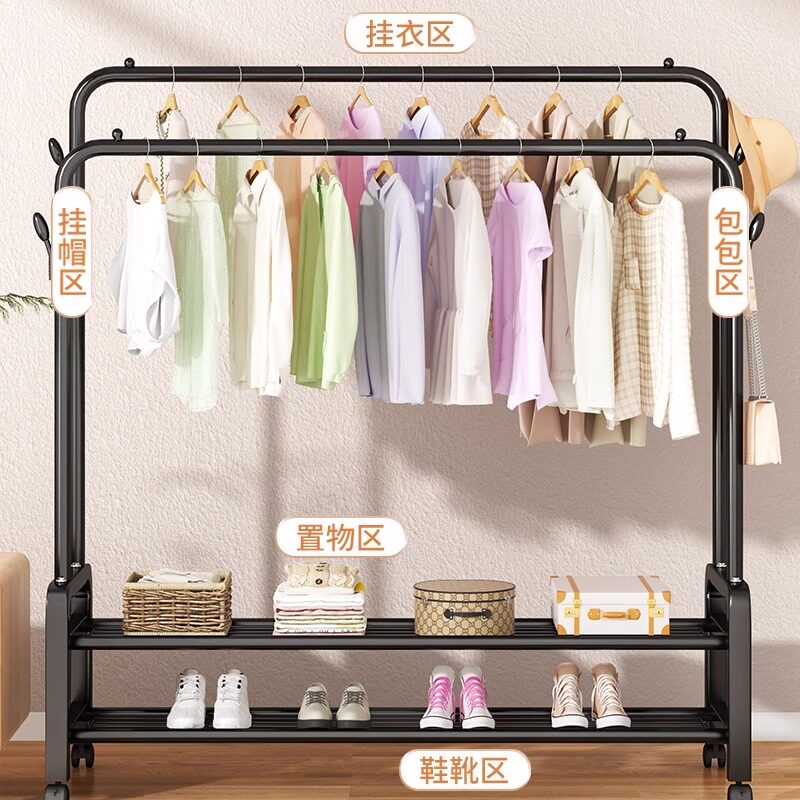 晾衣架落地家用卧室挂衣架宿舍室内双杆双层晒衣服架子简易凉衣杆