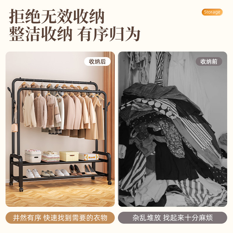 晾衣架落地家用可移动卧室凉衣架阳台挂衣服架子室内简易杆衣帽架
