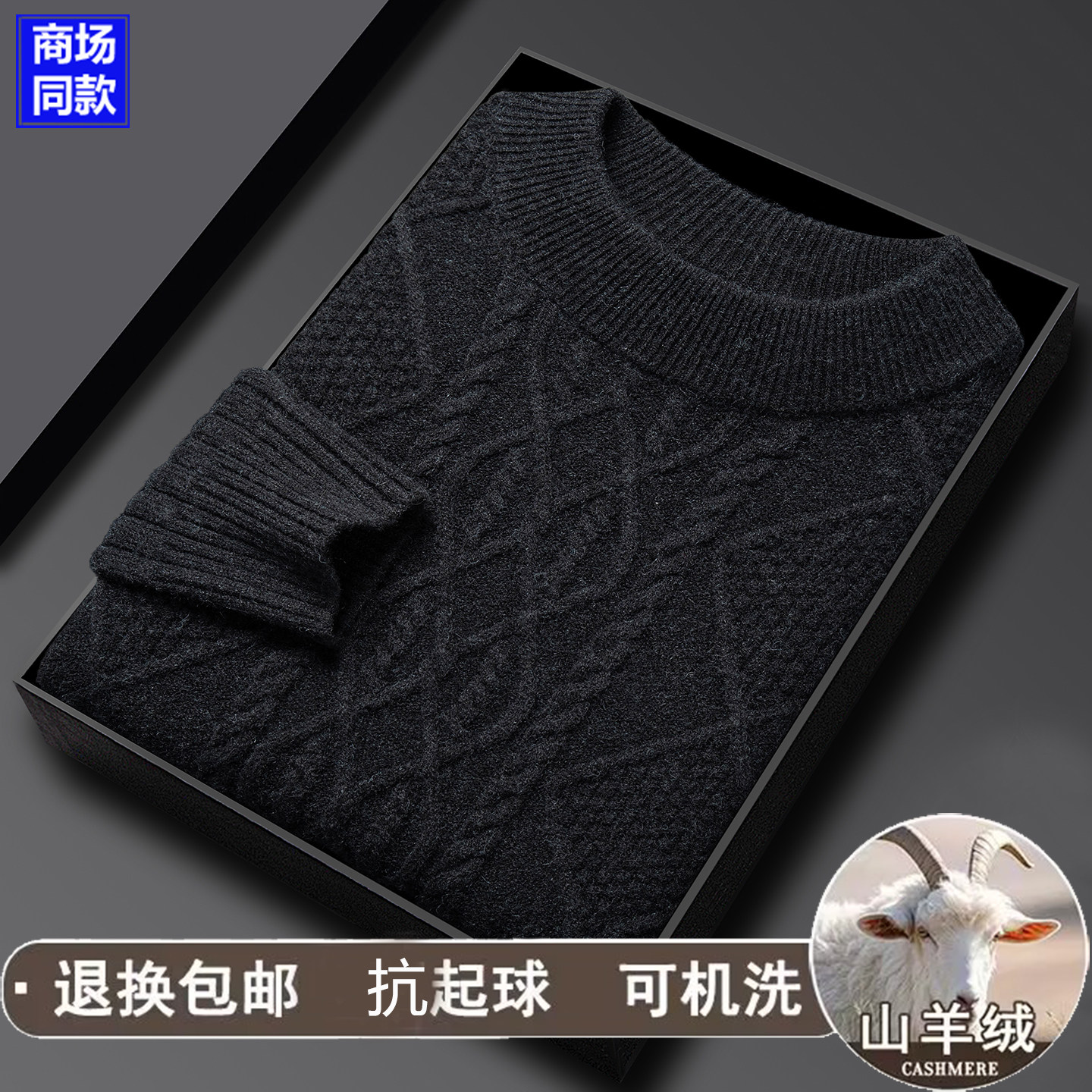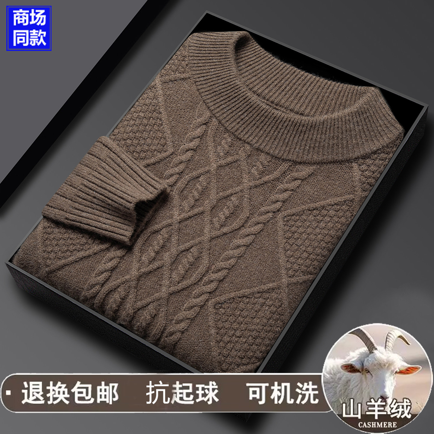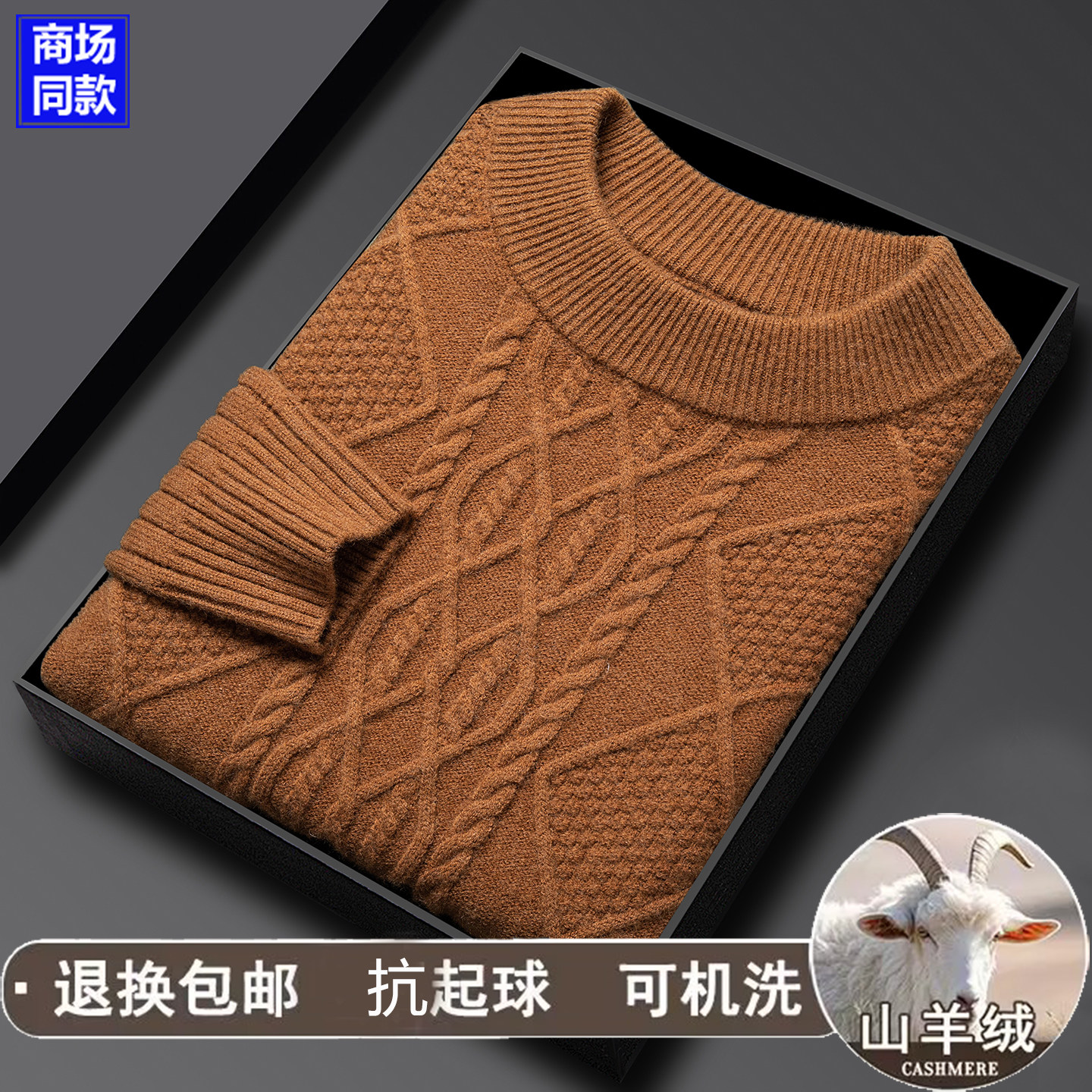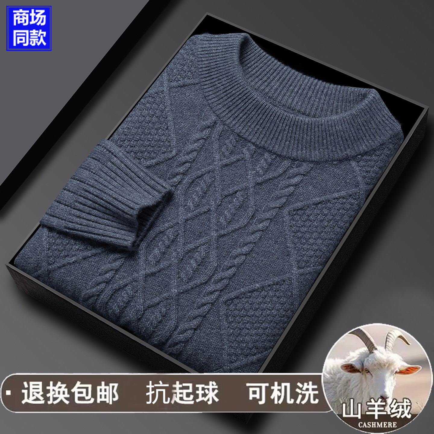 鄂尔多斯市高端羊绒衫男士半高领加厚款毛衣保暧麻花羊毛打底衫