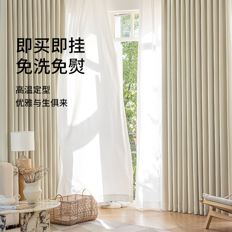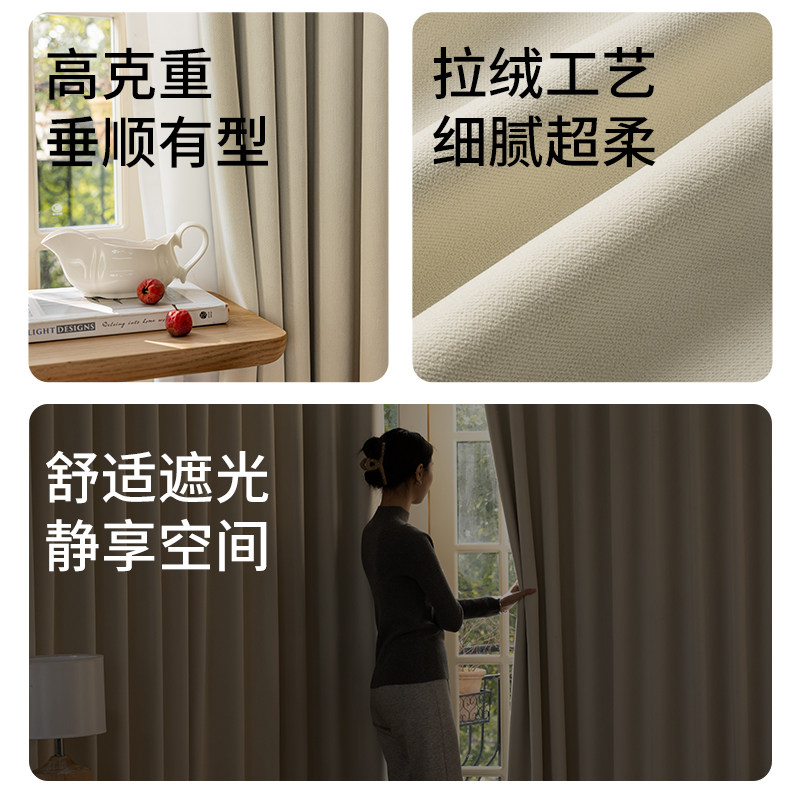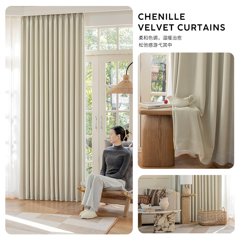 贵品窗帘遮光2025新款雪尼尔奶油风卧室飘窗遮光高端客厅遮阳布帘