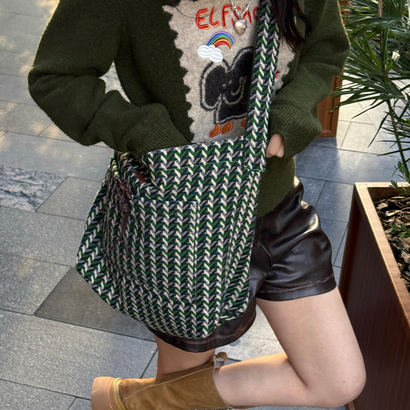 妖精的口袋复古格子帆布包女2025年新款大容量托特通勤休闲斜挎包