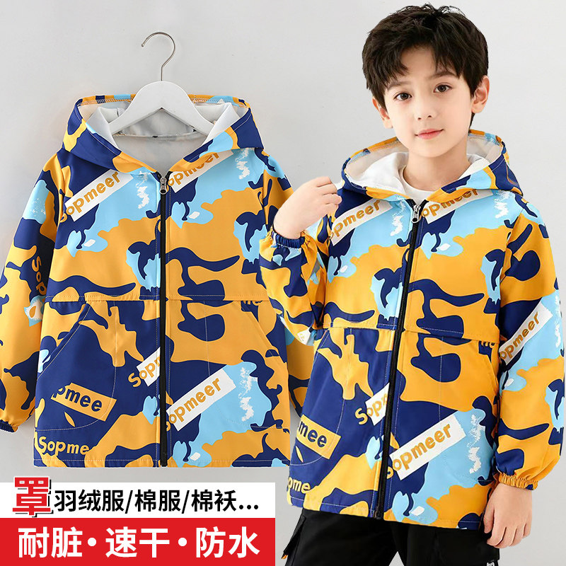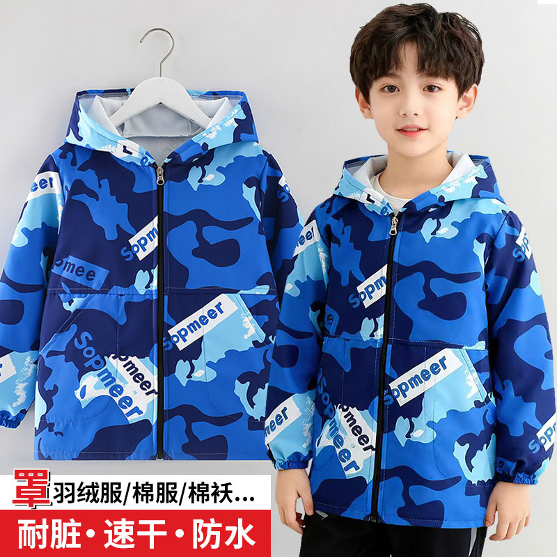 罩衣中大童加长防水防脏宝宝速干男女秋冬儿童外穿套羽绒棉服护衣